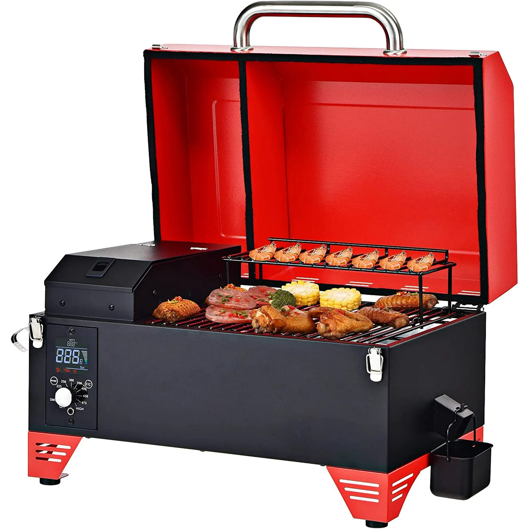 Portable Pellet Grill and Smoker, 8 in 1 Tabletop Pellet Grill, 256 sq.in Cooking Area Temperature 180°F to 500°F, Outdoor Wood Pellet Smoker for BBQ Camping Tailgating RV Cooking (Red)