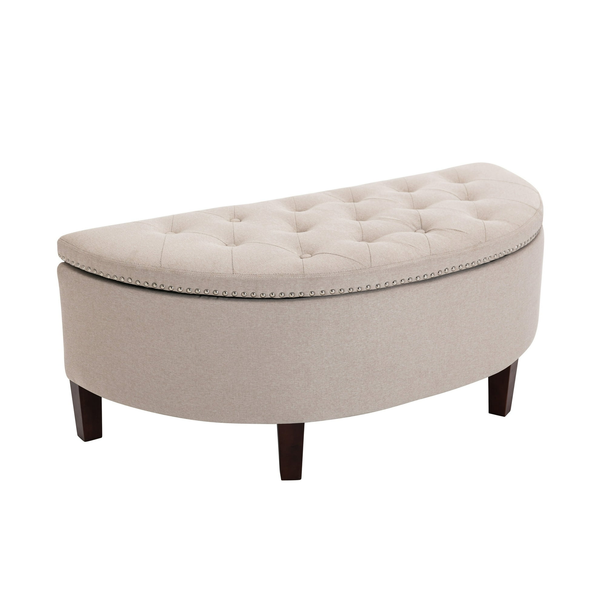 Porthos Home Kuro Half Moon Fabric Storage Ottoman Bench with Rubberwood Legs Beige