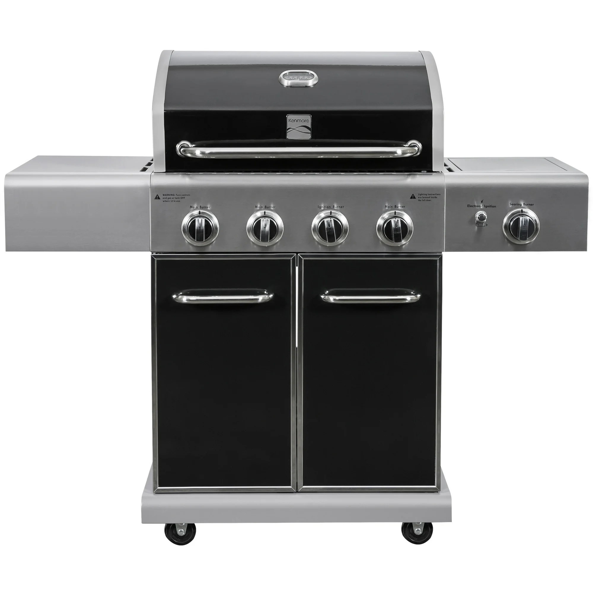 Kenmore 4-Burner Outdoor Propane Gas Grill with Searing Side Burner, Stainless Steel with Black Trim
