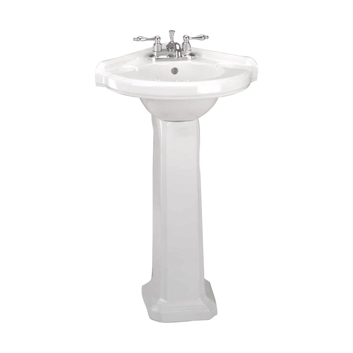 Portsmouth 22'' Corner Pedestal Bathroom Sink Small White Wash Basin Overflow and 4" Centerset Faucet Holes - Grade A Porcelain Sink Renovators Supply