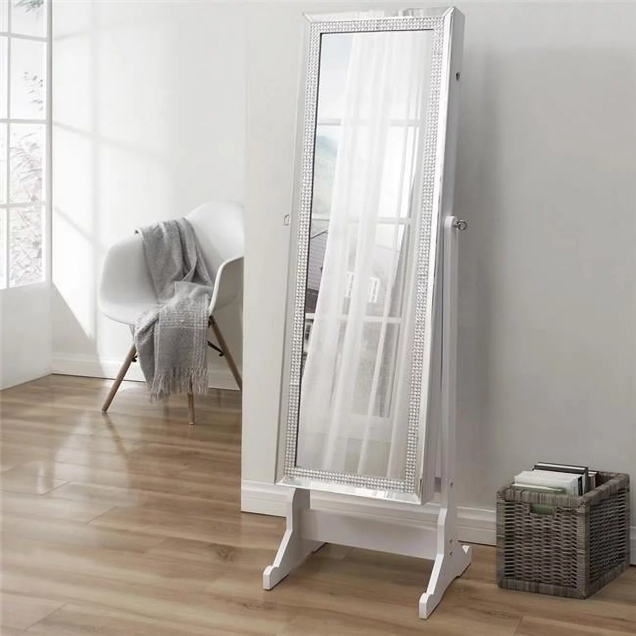 Posh Abigail Full Length Mirror Jewelry Armoire & Makeup Storage in White