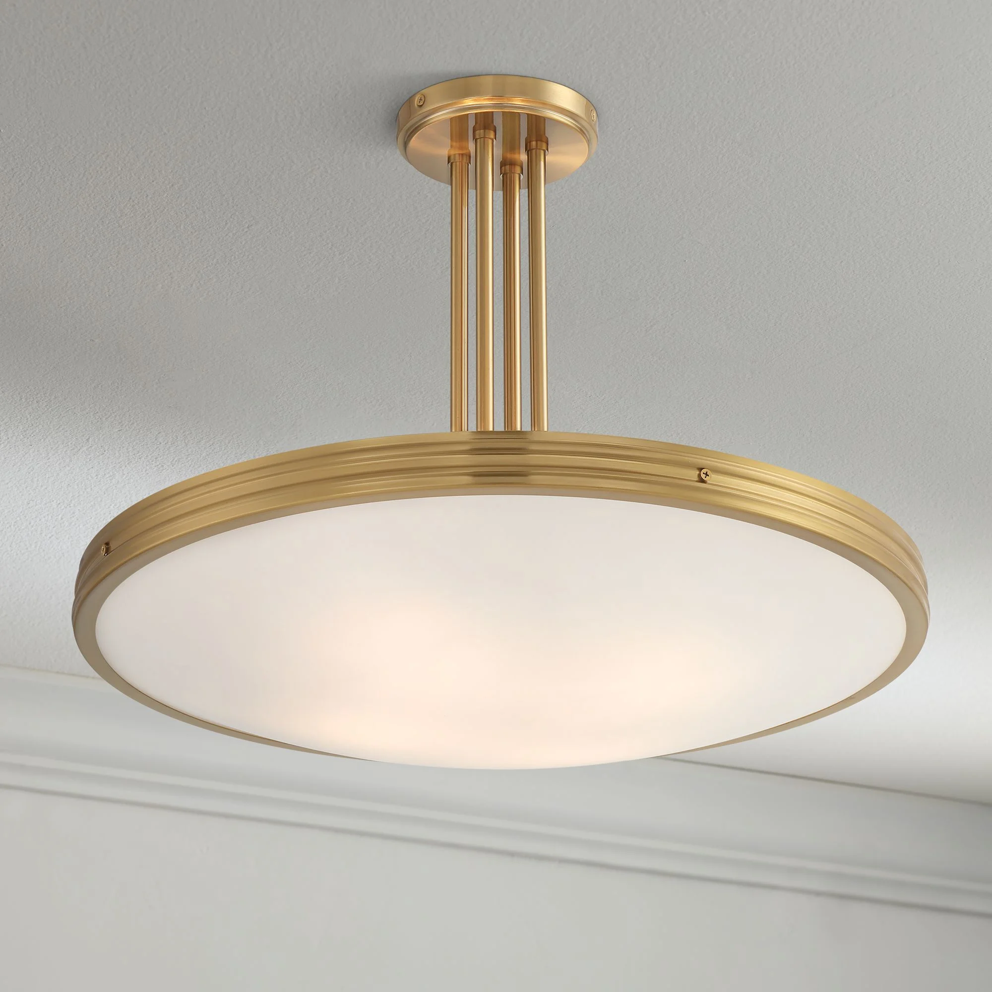 Possini Euro Design Aldo Antique Brass Chandelier 21 1/2" Wide Modern Art Deco LED White Glass 6-Light Fixture for Dining Room