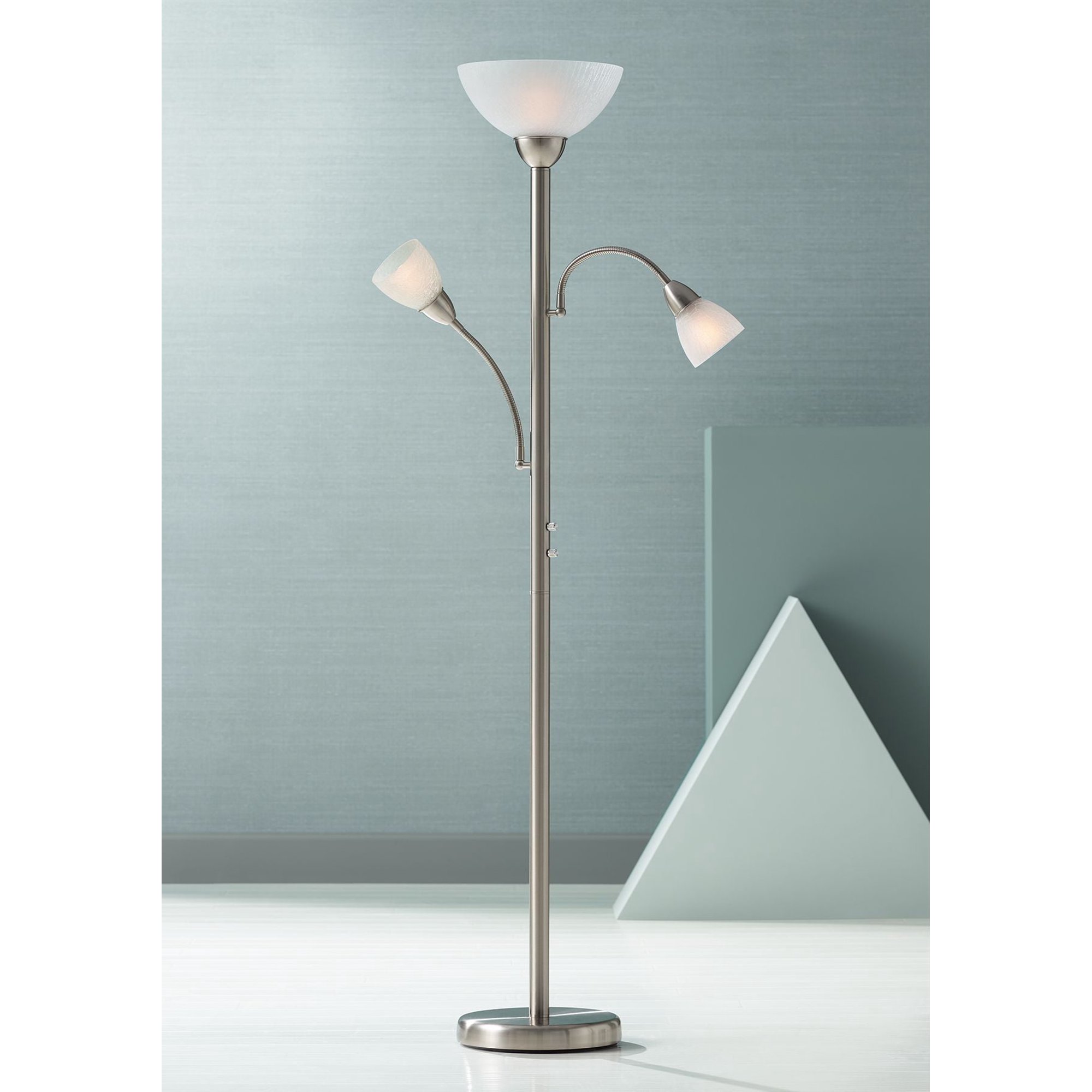 Possini Euro Design Alexei Modern Torchiere Floor Lamp with Side Lights 72" Tall Brushed Nickel White Crackle Glass for Living Room Reading Bedroom