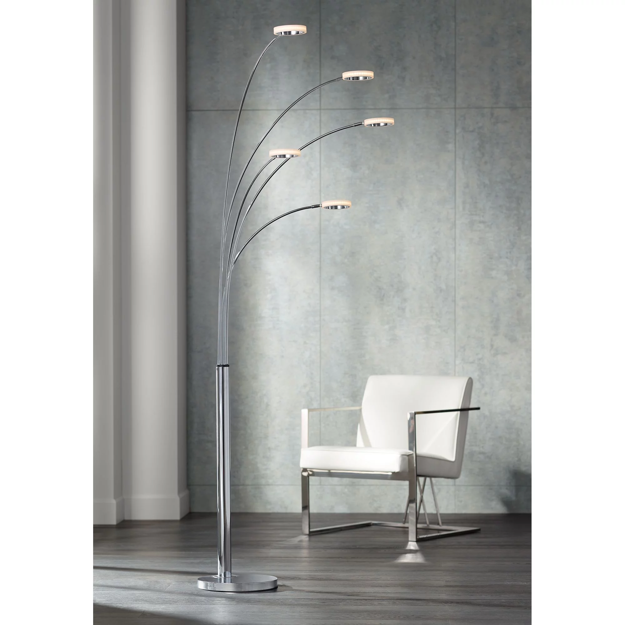 Possini Euro Design Aldo Modern Arc Floor Lamp 88" Tall Chrome Silver Metal 5 Light LED Acrylic Diffuser for Living Room Reading Bedroom Office House