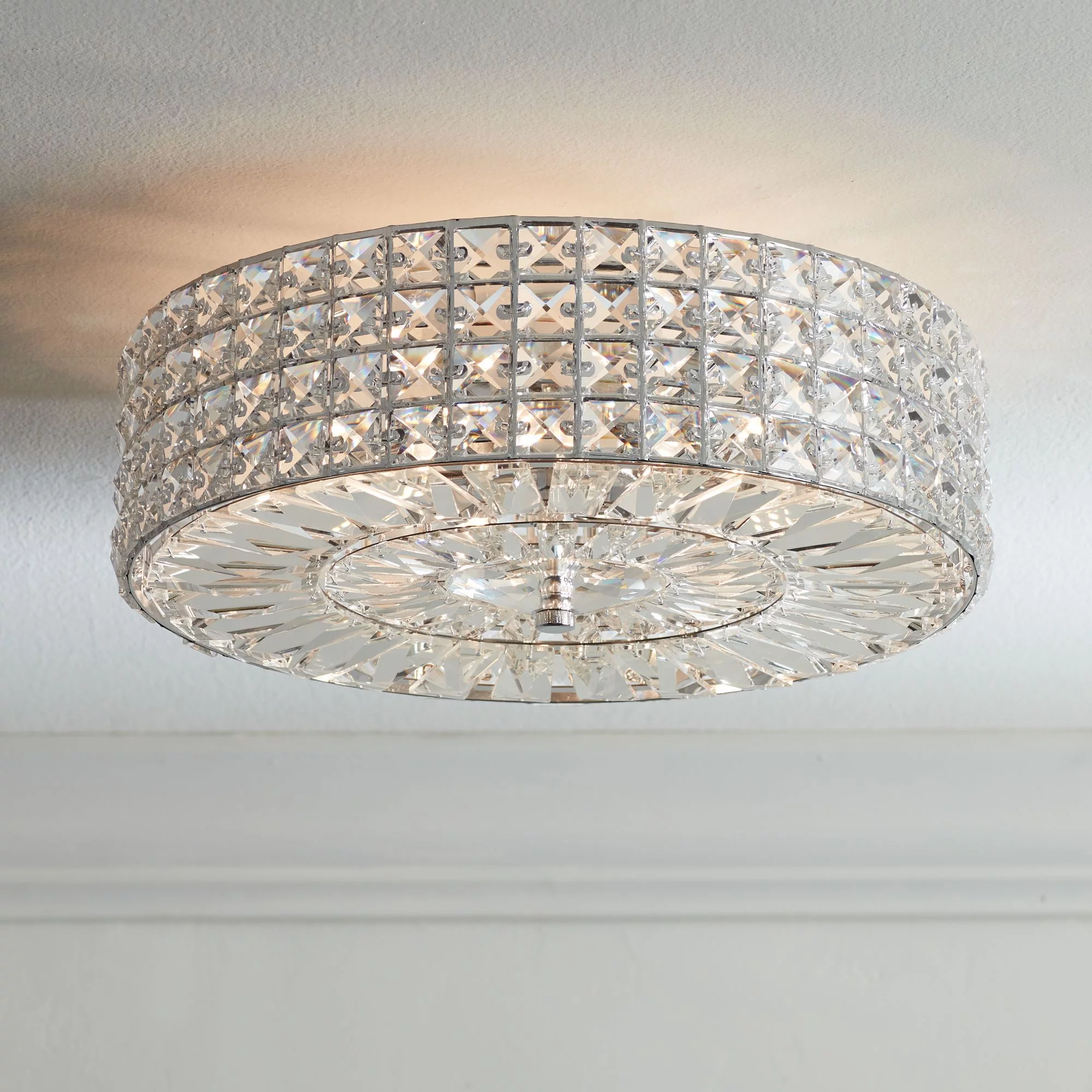 Possini Euro Design Avera Modern Ceiling Light Flush Mount Fixture 15 1/2" Wide Chrome 6-Light Clear Faceted Crystal for Bedroom Kitchen Living Room