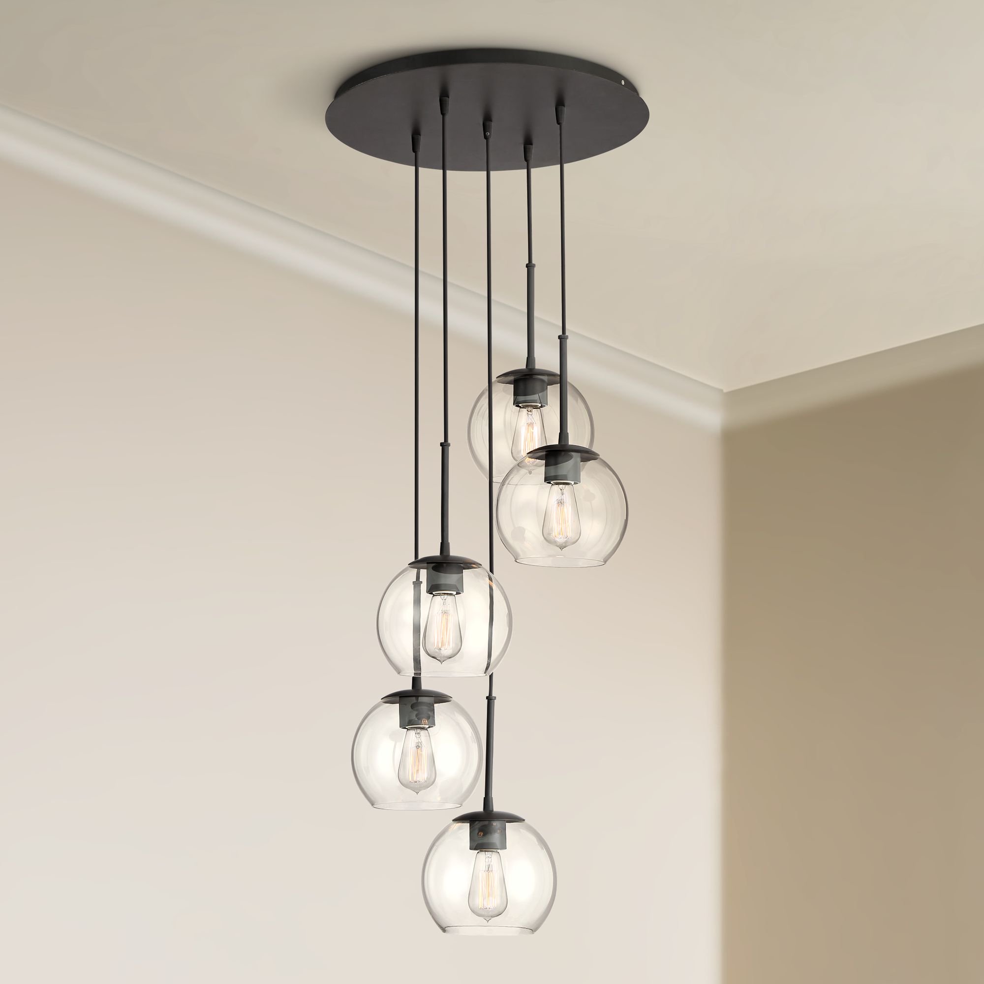 Possini Euro Design Black Pendant Chandelier 19 1/2" Wide Modern Clear Glass 5-Light Fixture for Dining Room Living House Home Foyer Kitchen Island