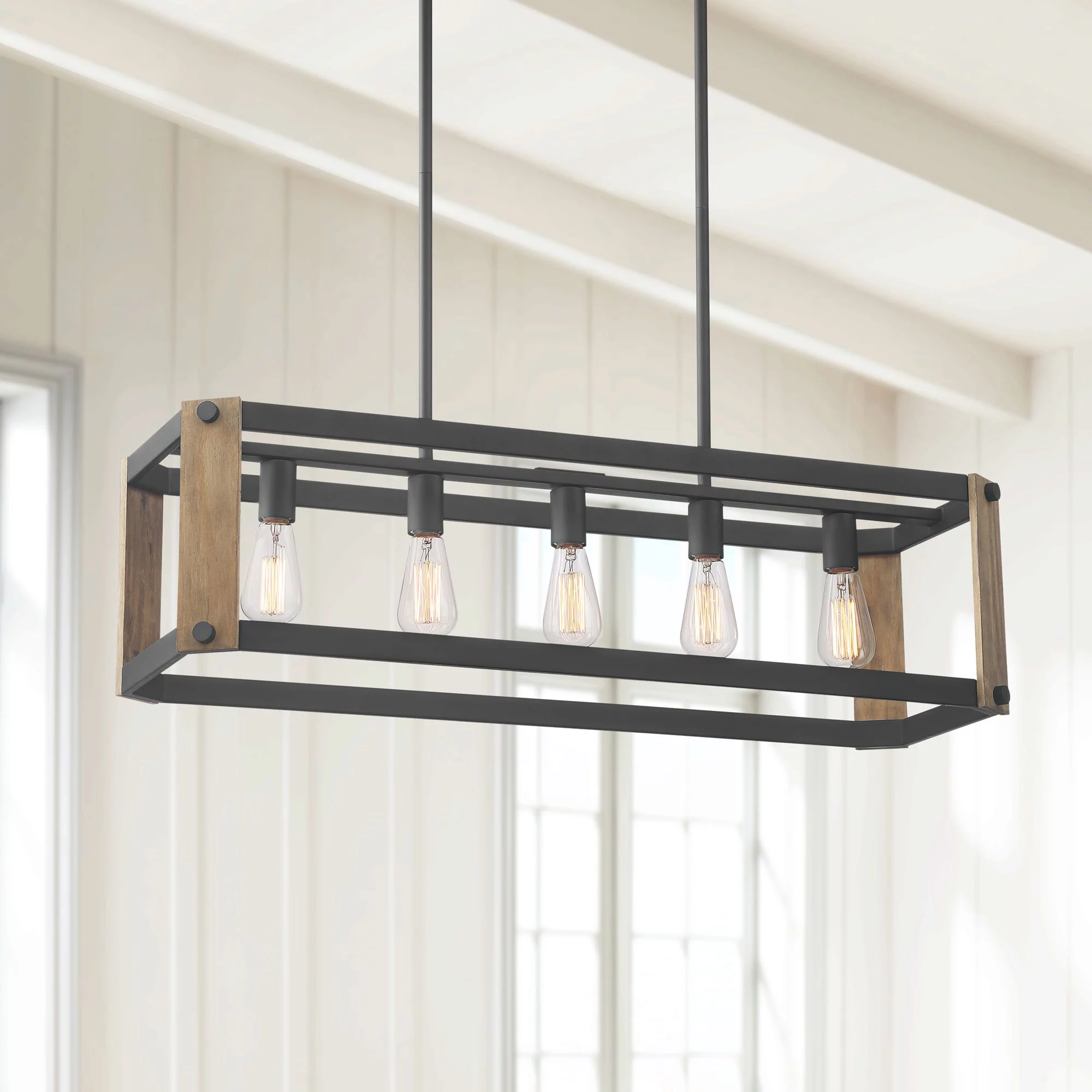 Possini Euro Design Black Linear Pendant Chandelier 36 1/4" Wide Rustic Farmhouse 5-Light Fixture for Kitchen Island Dining Room
