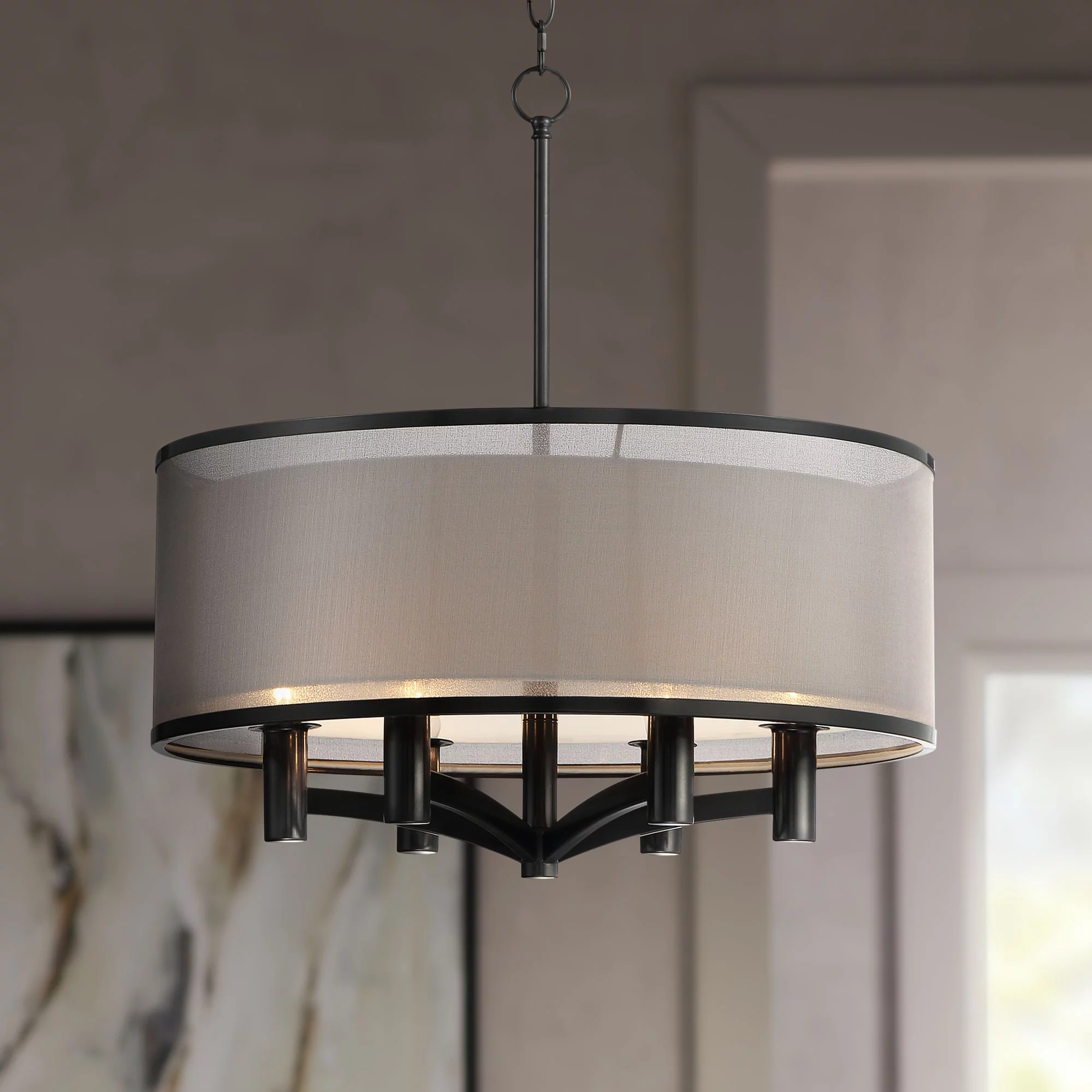 Possini Euro Design Black Drum Pendant Chandelier 22" Wide Modern Double Shade 6-Light Fixture Dining Room House Foyer Entryway