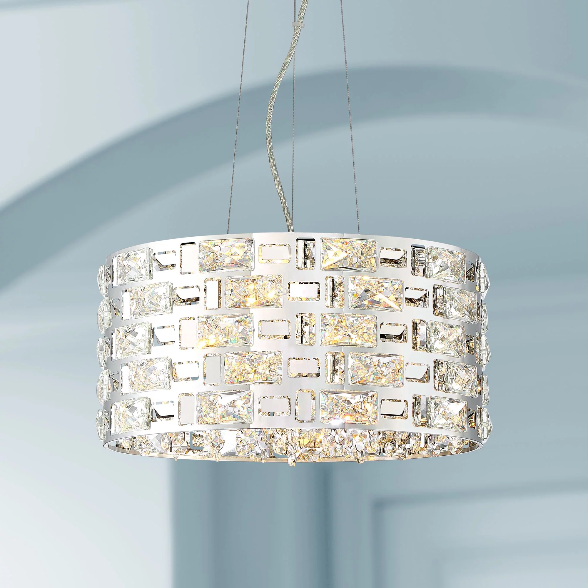 Possini Euro Design Crystal Rain Chrome Pendant Chandelier 15 1/2" Wide Modern Drum Shade 5-Light LED Fixture for Dining Room Foyer Kitchen Island