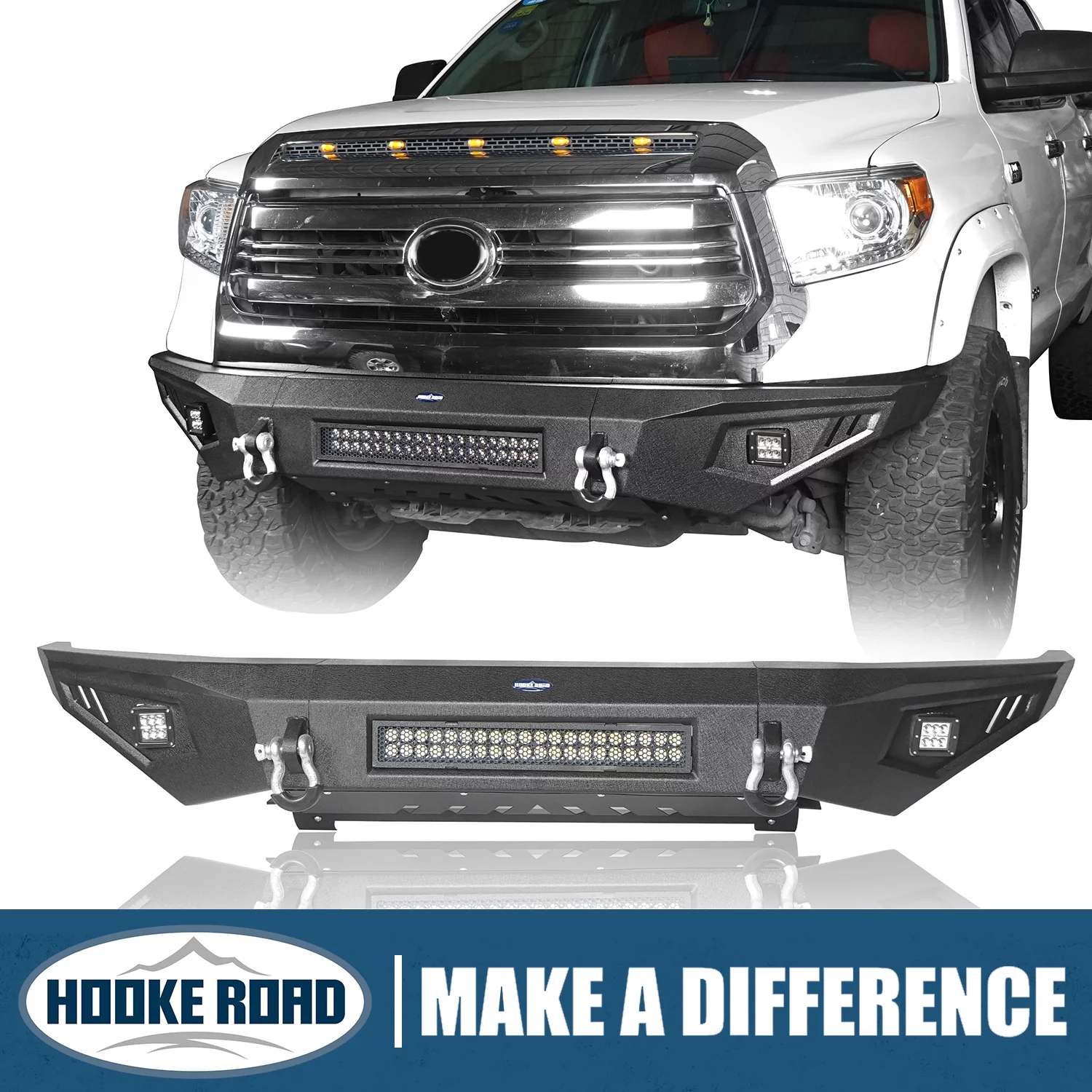 Hooke Road Fit 2014-2021 Toyota Tundra Off-road Steel Front Bumper w/ 120w LED Light Bar