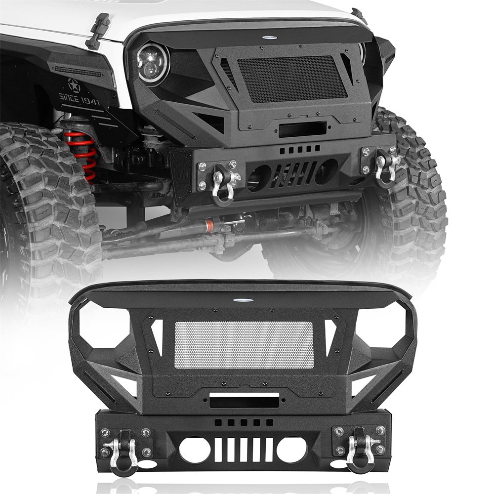 Hooke Road Steel Front Bumper w/ Grill Guard & Winch Plate Fit Jeep Wrangler JK 2007-2018