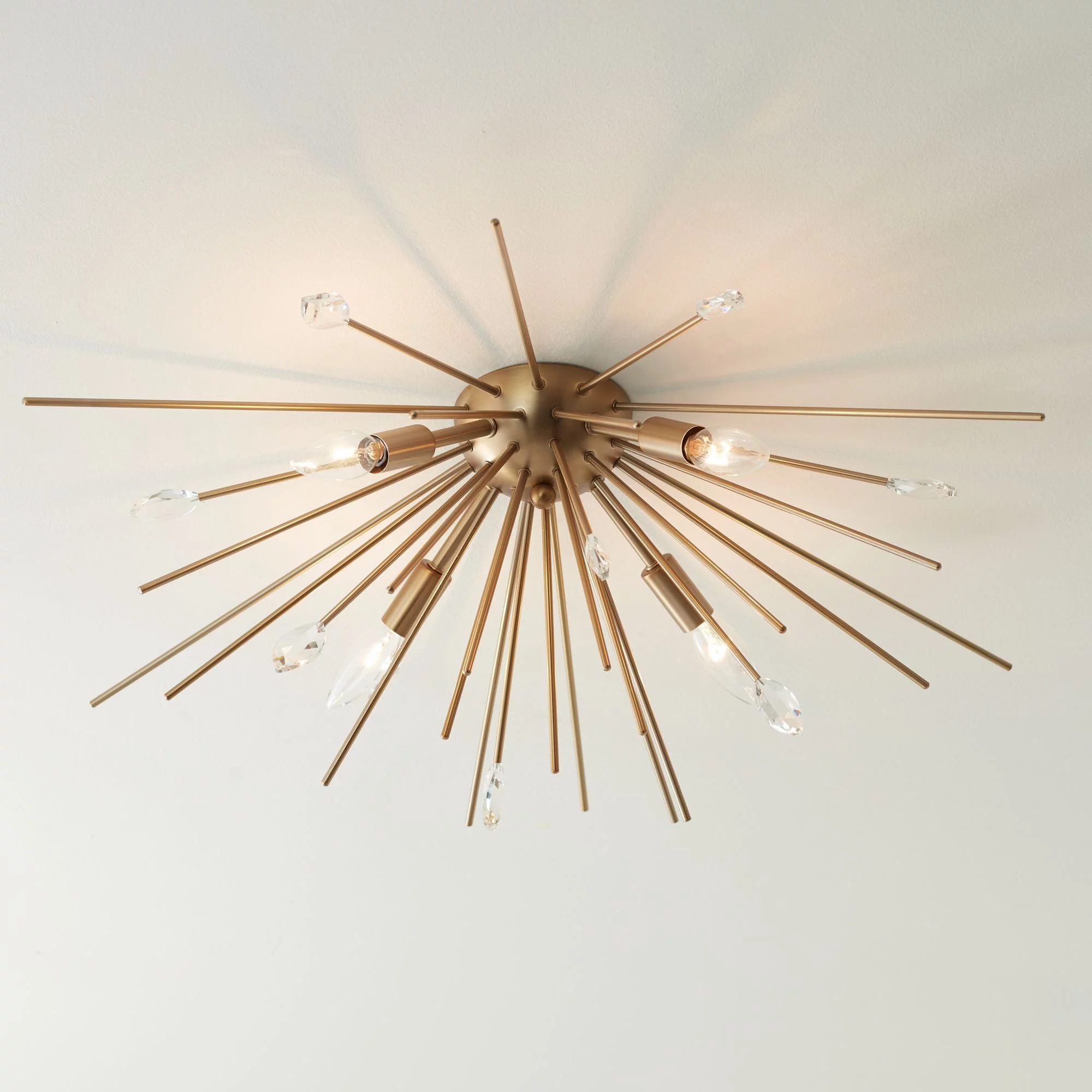 Possini Euro Design Janae Modern Ceiling Light Flush Mount Fixture 29" Wide Plated Antique Gold Sputnik 4-Light Clear Crystal for Bedroom Living Room