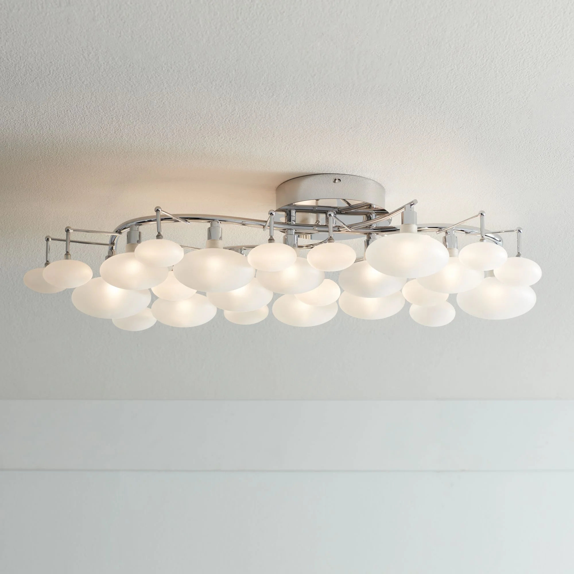 Possini Euro Design Lilypad Modern Ceiling Light Semi Flush Mount Fixture 30" Wide Chrome 12-Light Frosted Opal Glass for Bedroom Kitchen Living Room