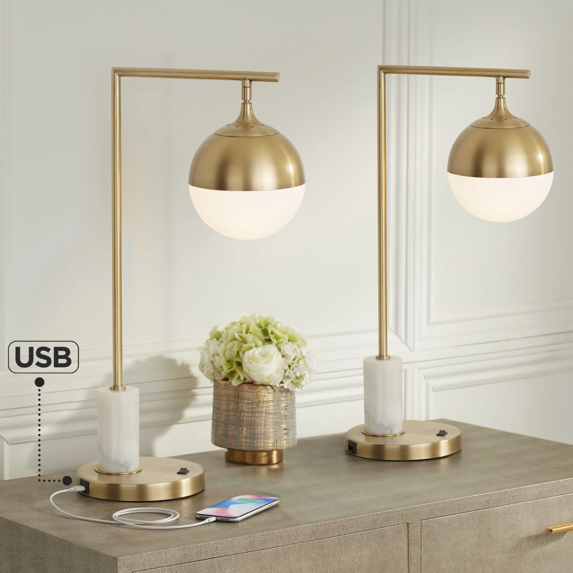 Possini Euro Design Luna 26 1/2" Tall Modern Desk Lamps Set of 2 USB Port Gold Antique Brass Finish Metal Home Office Charging