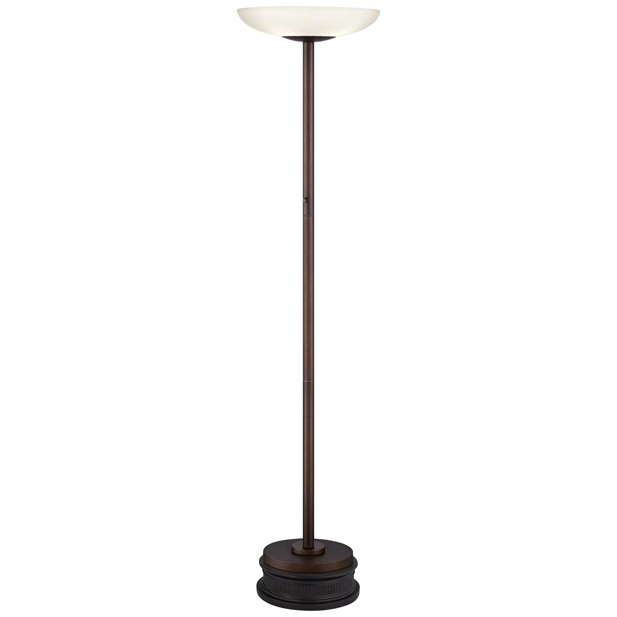 Possini Euro Design Meridian Light Blaster Modern Torchiere Floor Lamp with Riser 72" Tall Oil Rubbed Bronze LED Frosted Glass Shade for Living Room