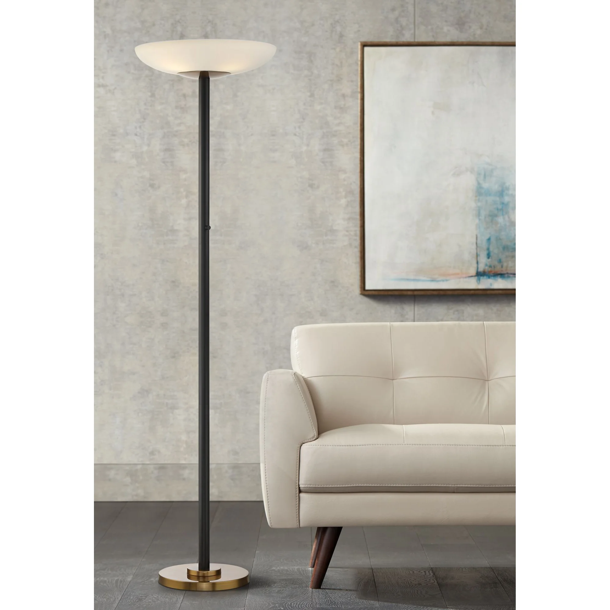Possini Euro Design Meridian Light Blaster Modern Torchiere Floor Lamp 72" Tall Black Brass LED Frosted Glass Shade for Living Room Bedroom Office