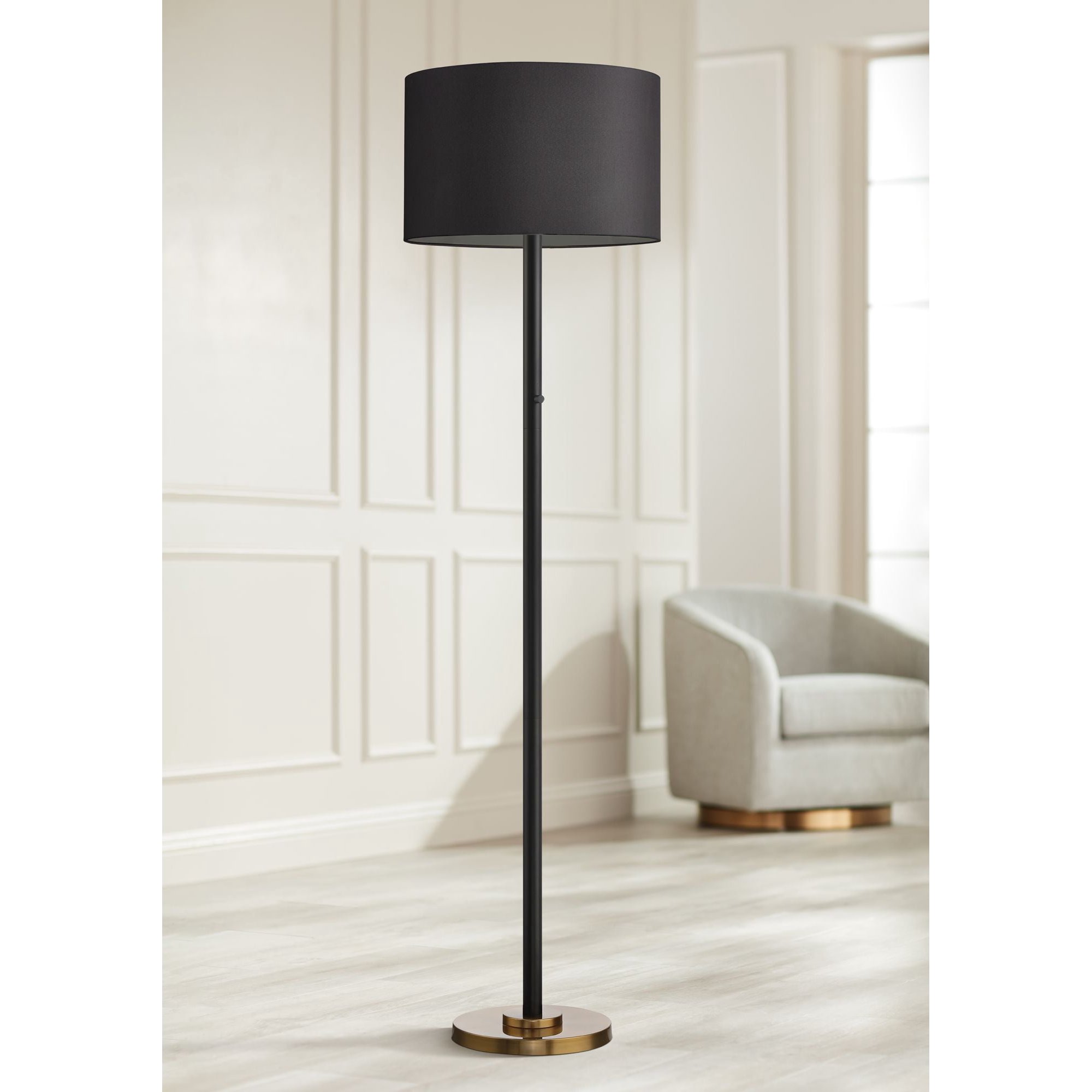 Possini Euro Design Meridian Modern 72" Tall Floor Lamp Black Metal Light Blaster LED Black Drum Shade for Living Room Bedroom Office House