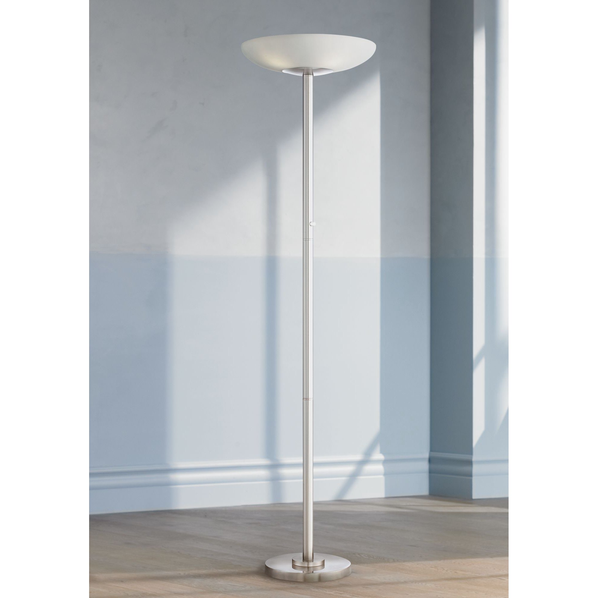 Possini Euro Design Meridian Light Blaster Modern Torchiere Floor Lamp 72" Tall Brushed Nickel LED Frosted Glass Shade for Living Room Bedroom Office