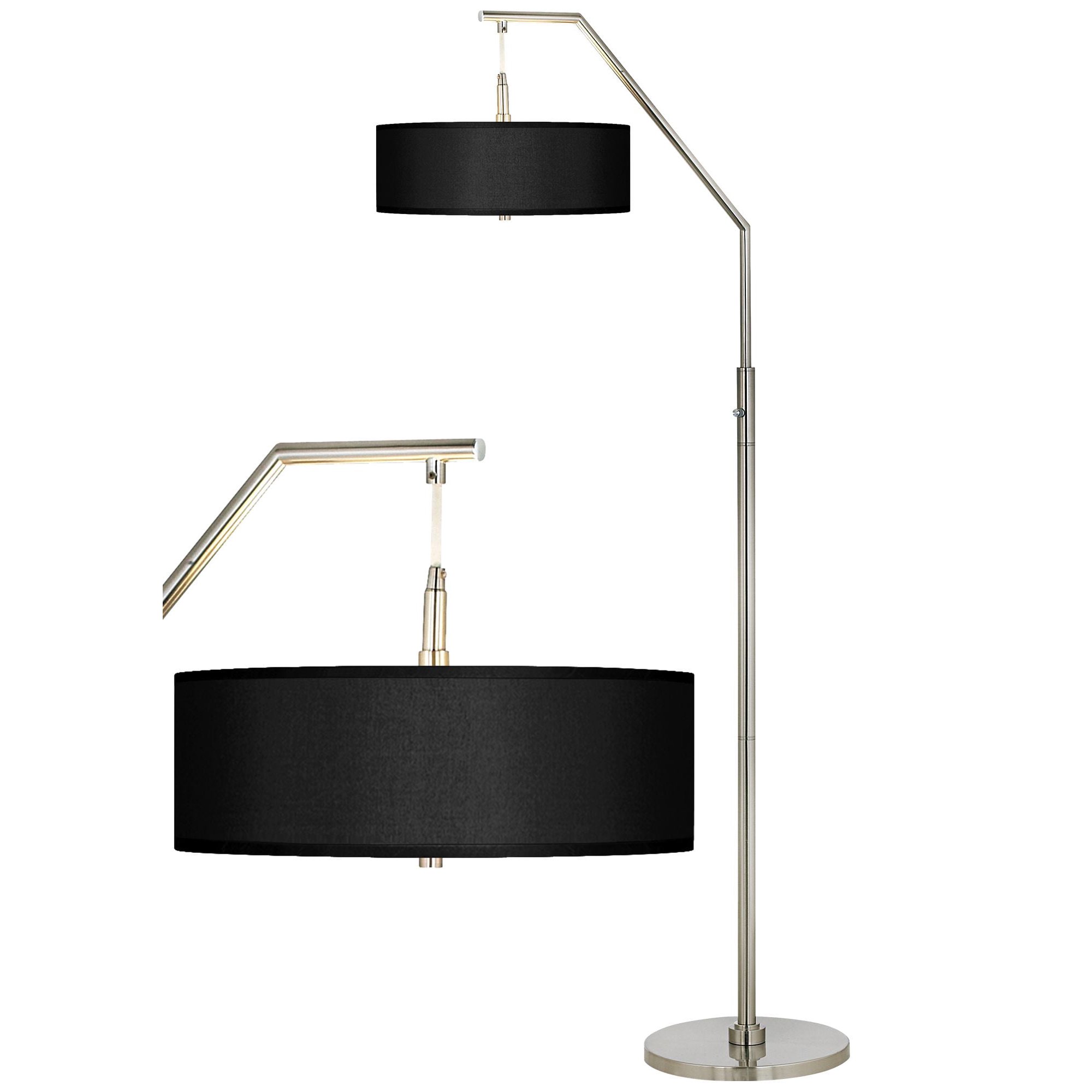 Possini Euro Design Modern Arc Floor Lamp 71.5" Tall Brushed Nickel Black Faux Silk Fabric Drum Shade Acrylic Diffuser Decor Living Room