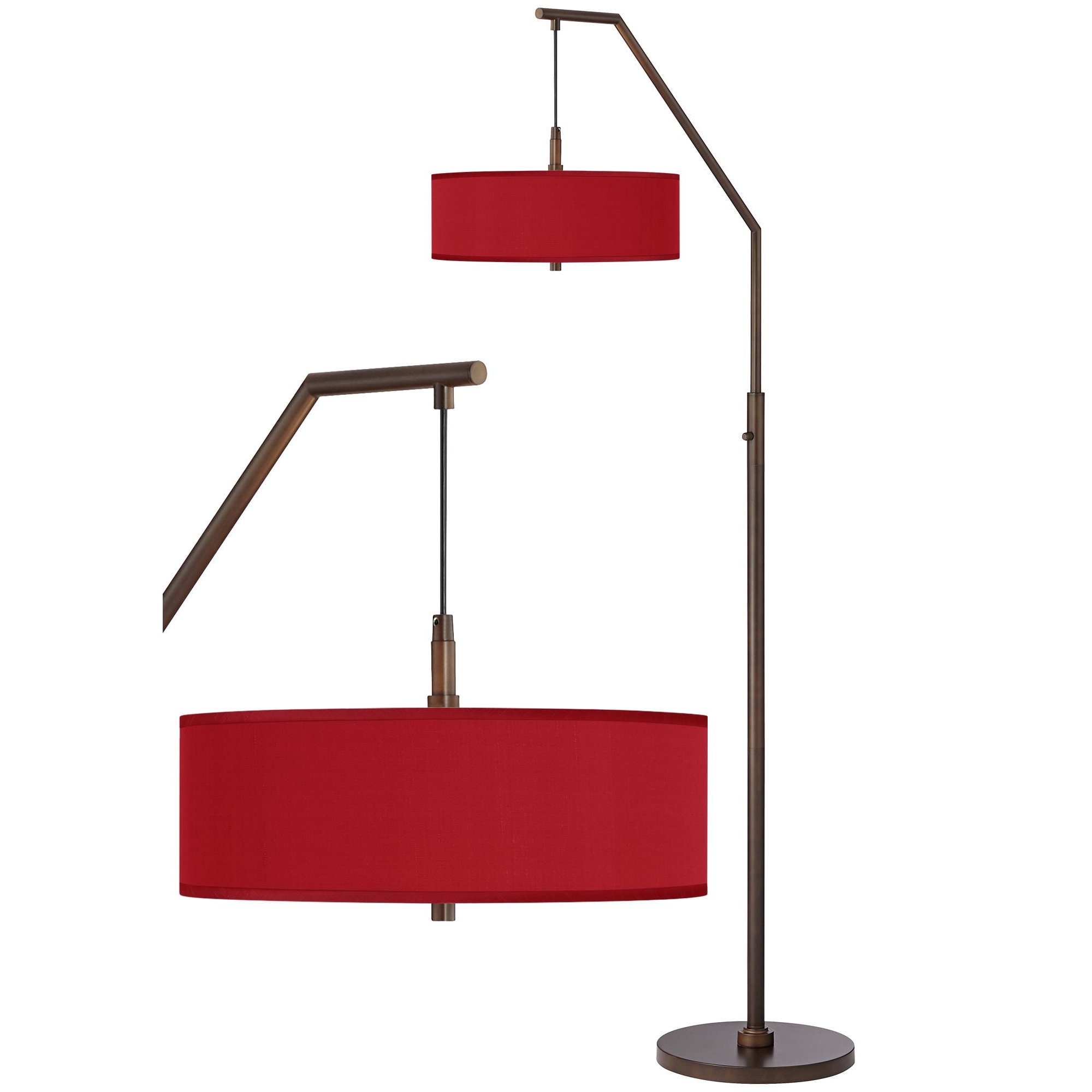 Possini Euro Design Modern Arc Floor Lamp Downbridge 71.5" Tall Oil Rubbed Bronze Red Polyester Drum Shade for Living Room Reading Bedroom
