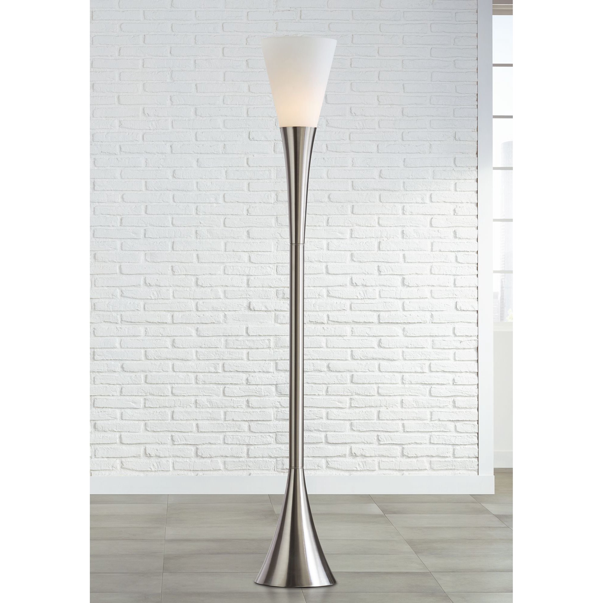Possini Euro Design Piazza Modern Torchiere Floor Lamp 72 1/2" Tall Brushed Nickel Metal Frosted White Glass Shade for Living Room Bedroom Office Home