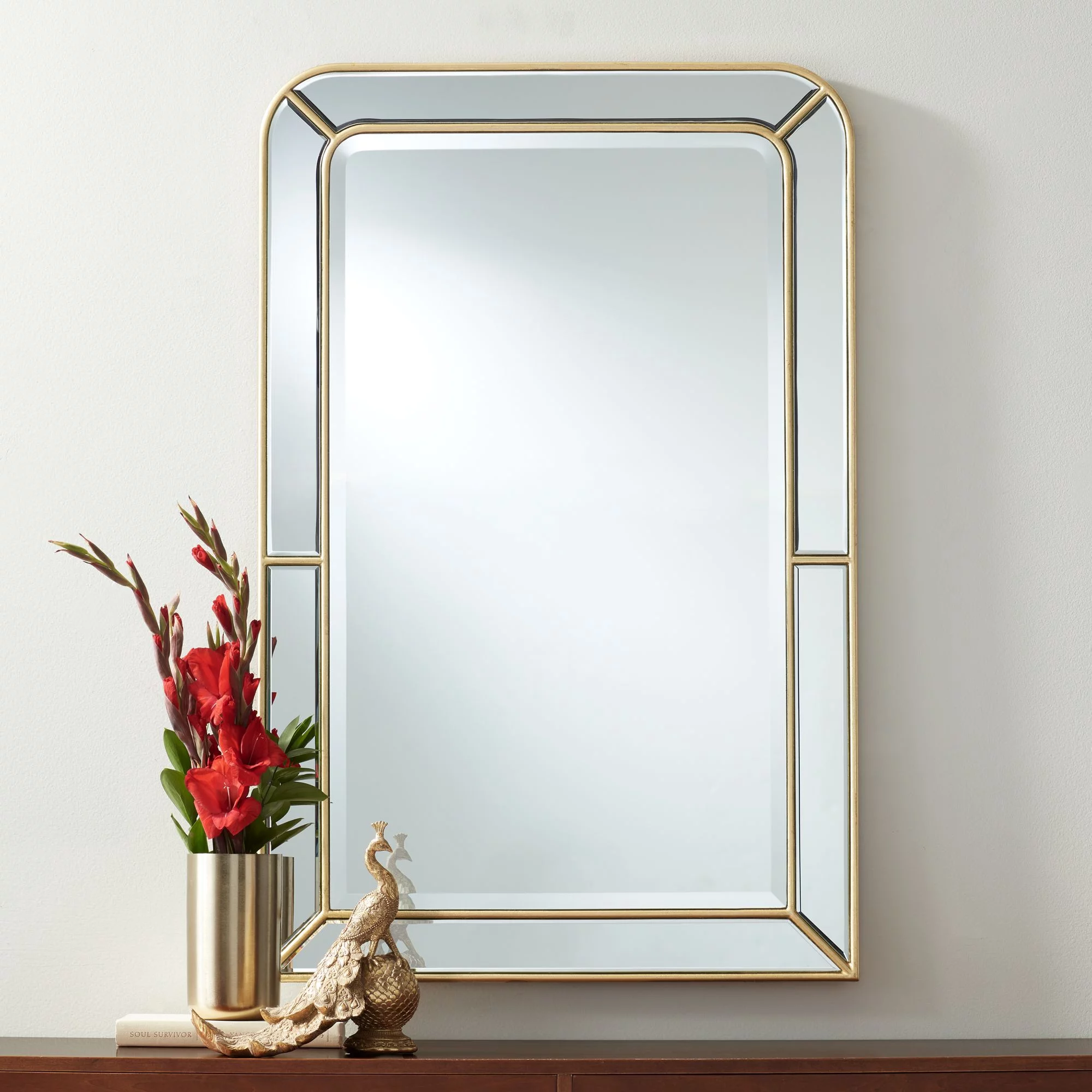 Possini Euro Design Rectangular Vanity Wall Mirror Modern Glam Beveled Edge Shiny Silver Leaf Frame 26" Wide for Bathroom Bedroom Living Family Room