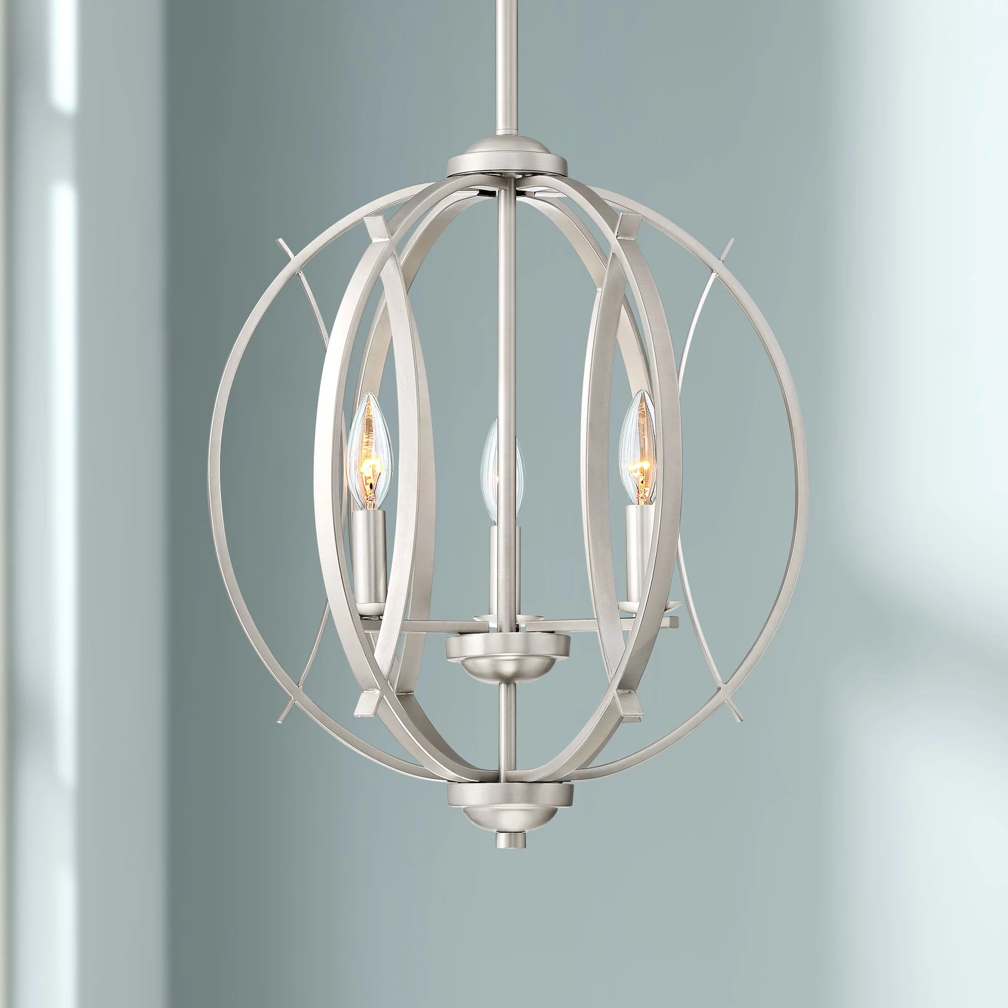 Possini Euro Design Spherical Brushed Nickel Pendant Chandelier 16" Wide Modern Orb 3-Light Fixture for Dining Room House Foyer Kitchen Island Bedroom