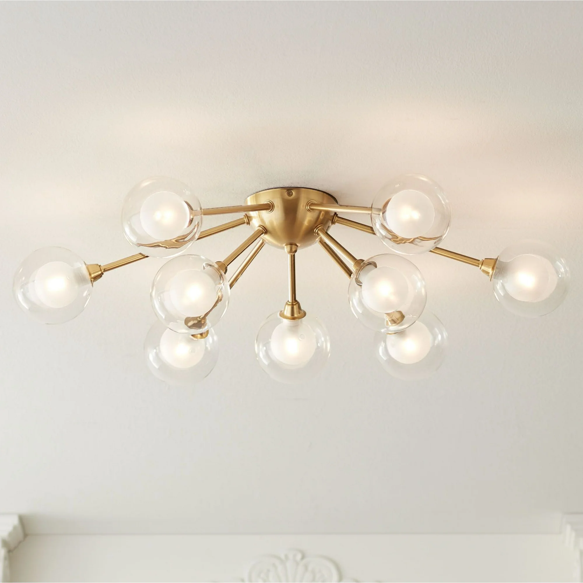 Possini Euro Design Spheres Modern Ceiling Light Flush Mount Fixture 28" Wide Warm Brass 9-Light LED Clear Globe Glass for Bedroom Kitchen Living Room