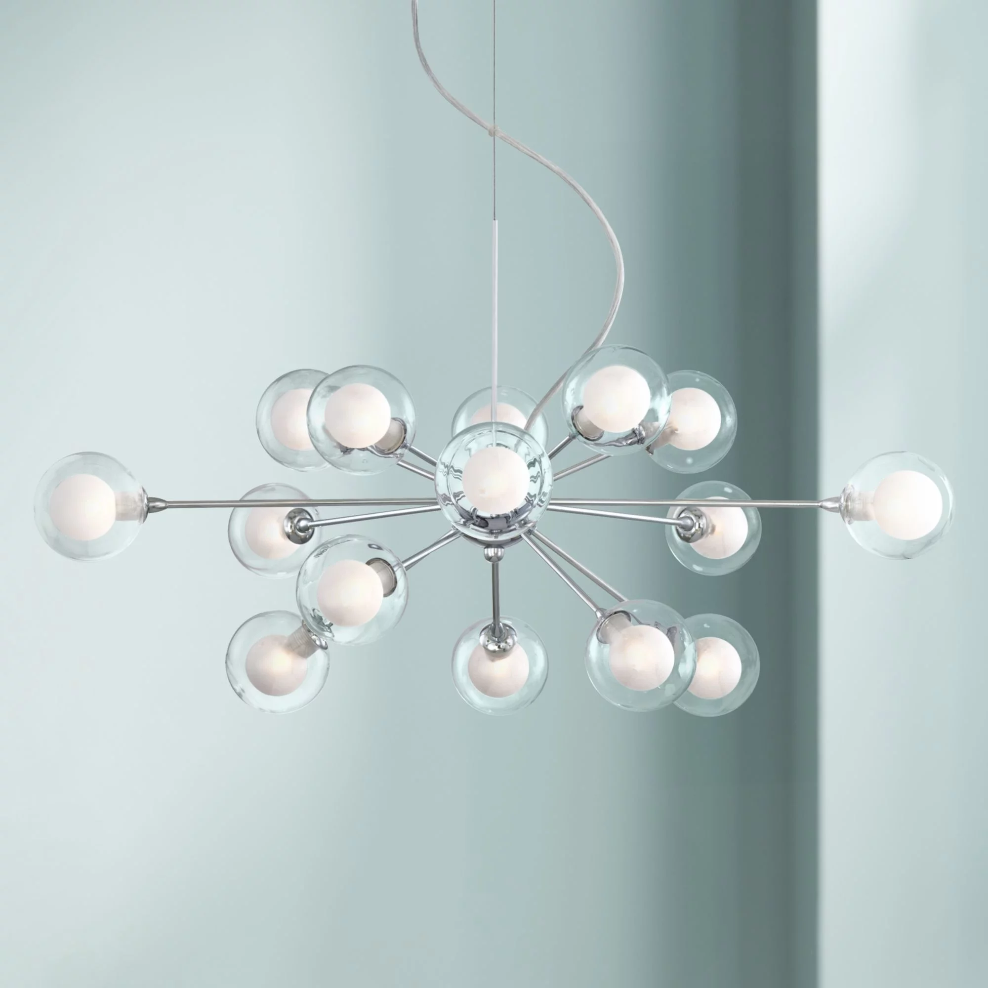 Possini Euro Design Spheres Chrome Chandelier 30" Wide Mid Century Modern Sputnik Glass Shade 15-Light Fixture for Dining Room House Kitchen Island