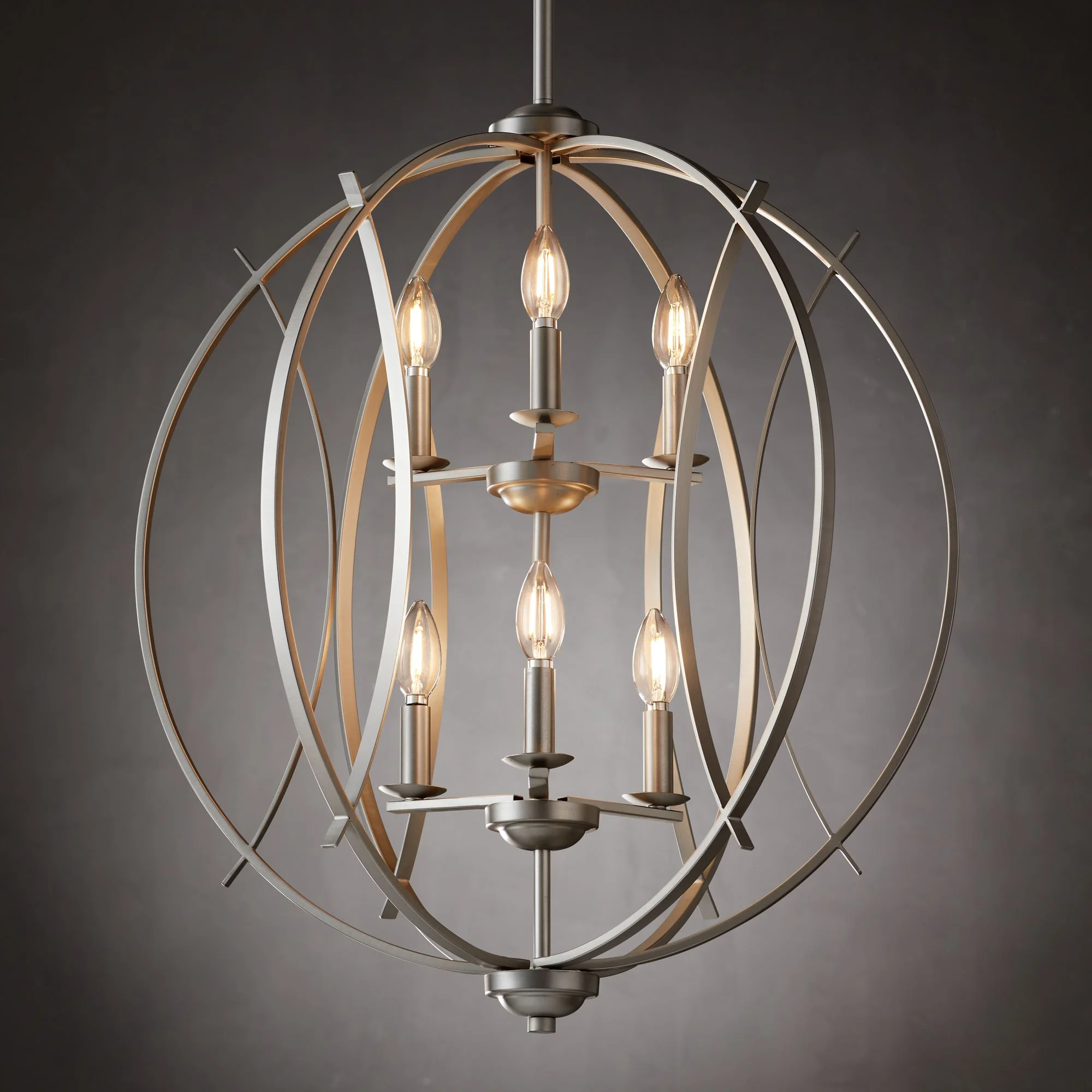 Possini Euro Design Spherical Brushed Nickel Large Chandelier 24" Wide Modern 6-Light Fixture for Dining Room House Foyer Kitchen Island Entryway Home