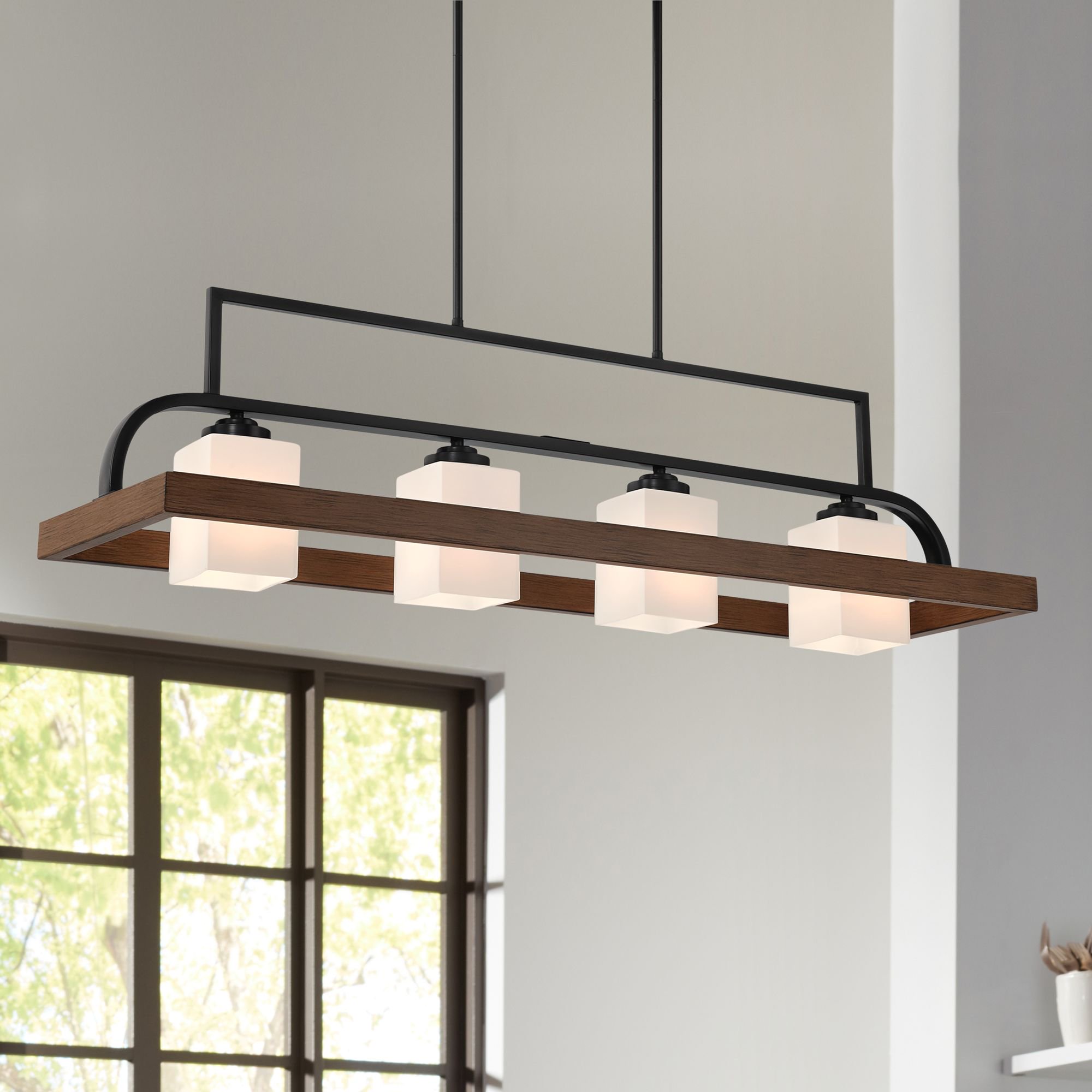Possini Euro Design Spearhead Black Wood Linear Pendant Chandelier 42" Wide Modern White Glass 4-Light Dining Room Kitchen Island