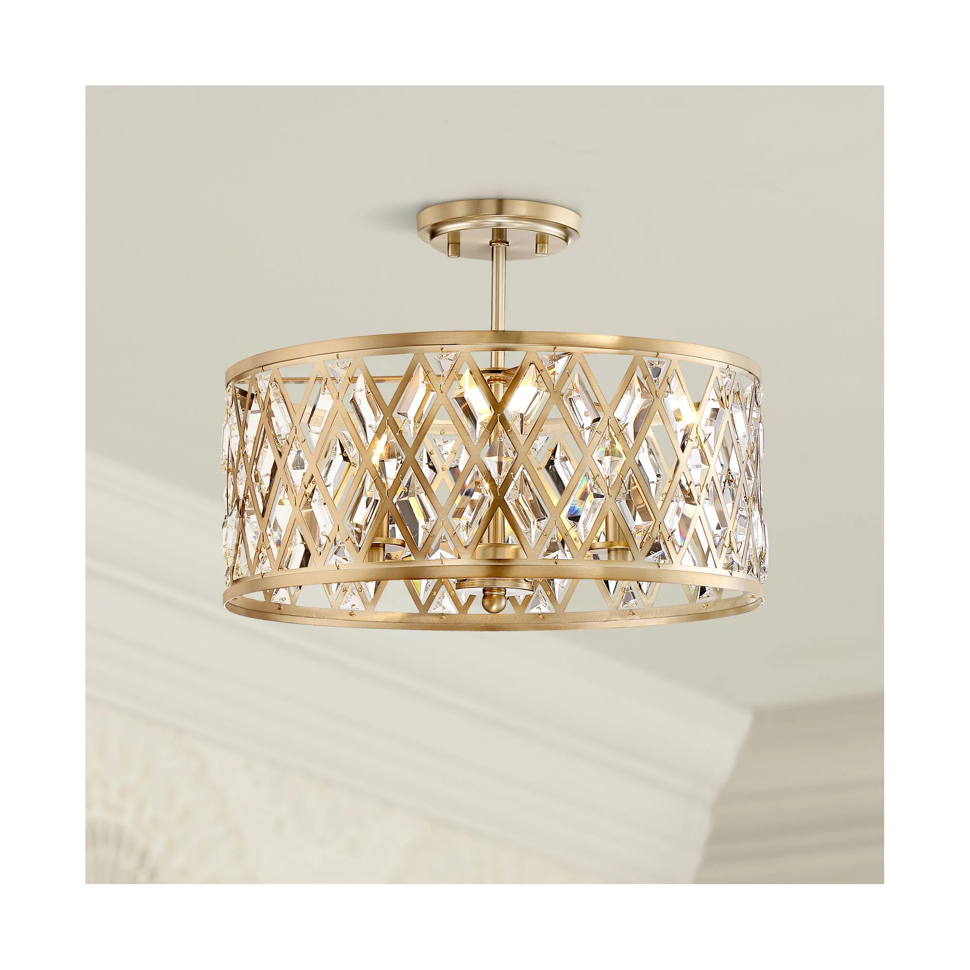 Possini Euro Design Tanz Modern Ceiling Light Semi Flush Mount Fixture 16 1/2" Wide Satin Brass 3-Light Clear Glass Crystal for Bedroom Kitchen House