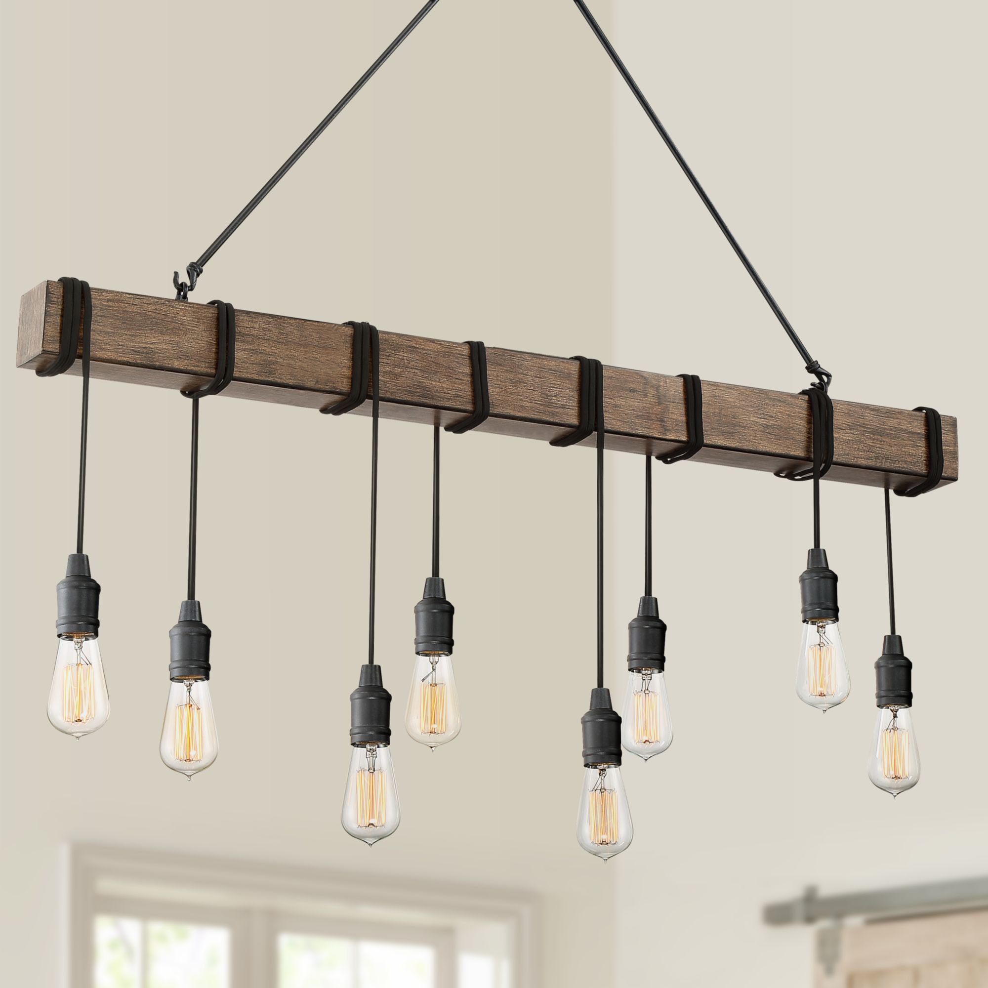 Possini Euro Design Tomas Black Wood Grain Island Pendant Chandelier 42 1/4" Wide Farmhouse Industrial Rustic 8-Light Fixture for Dining Room Kitchen