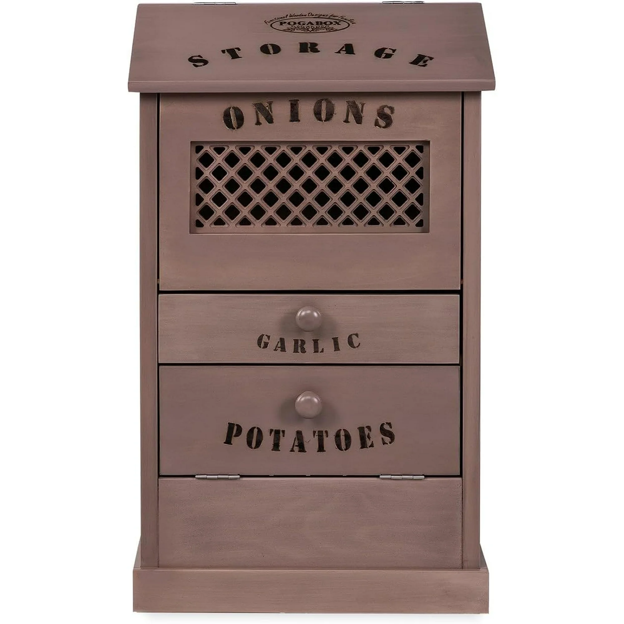 Potato Onion & Garlic Storage Box - Vegetable Wooden Bin for Home and Kitchen, Classic Vegetables Organizer Garlic Keeper with Flip Top