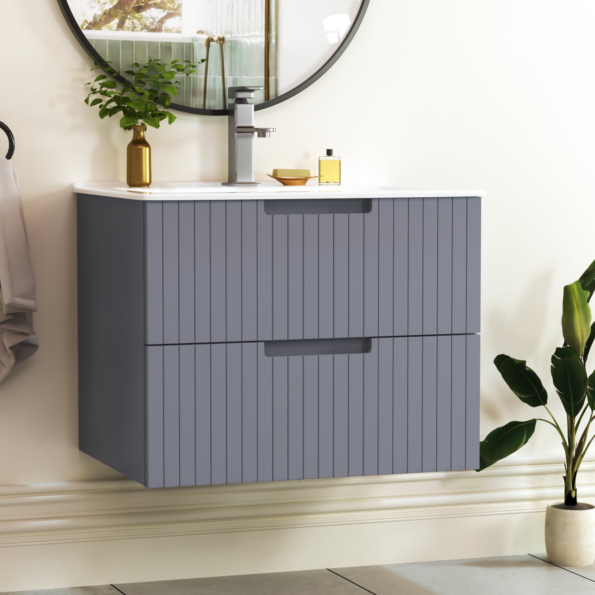 Pouseayar 24Inch Floating Bathroom Vanity with Ceramic Sink,Modern Bath Storage Cabinet,Wall Mounted Combo Set