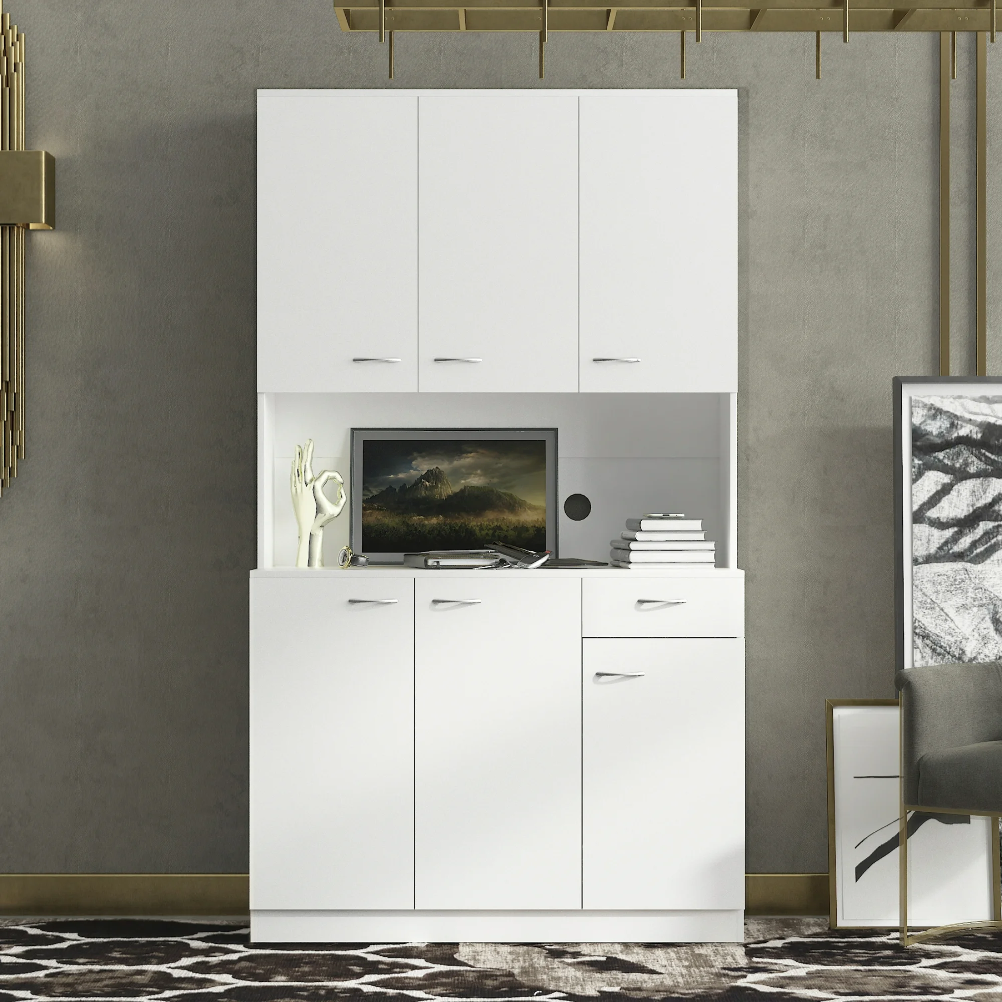 Pouseayar 70.87" Tall Kitchen Cabinet with 6-Doors, 1-Open Shelves and 1-Drawer, Freestanding Kitchen Pantry Cabinet, Microwave Storage Cabinet, White