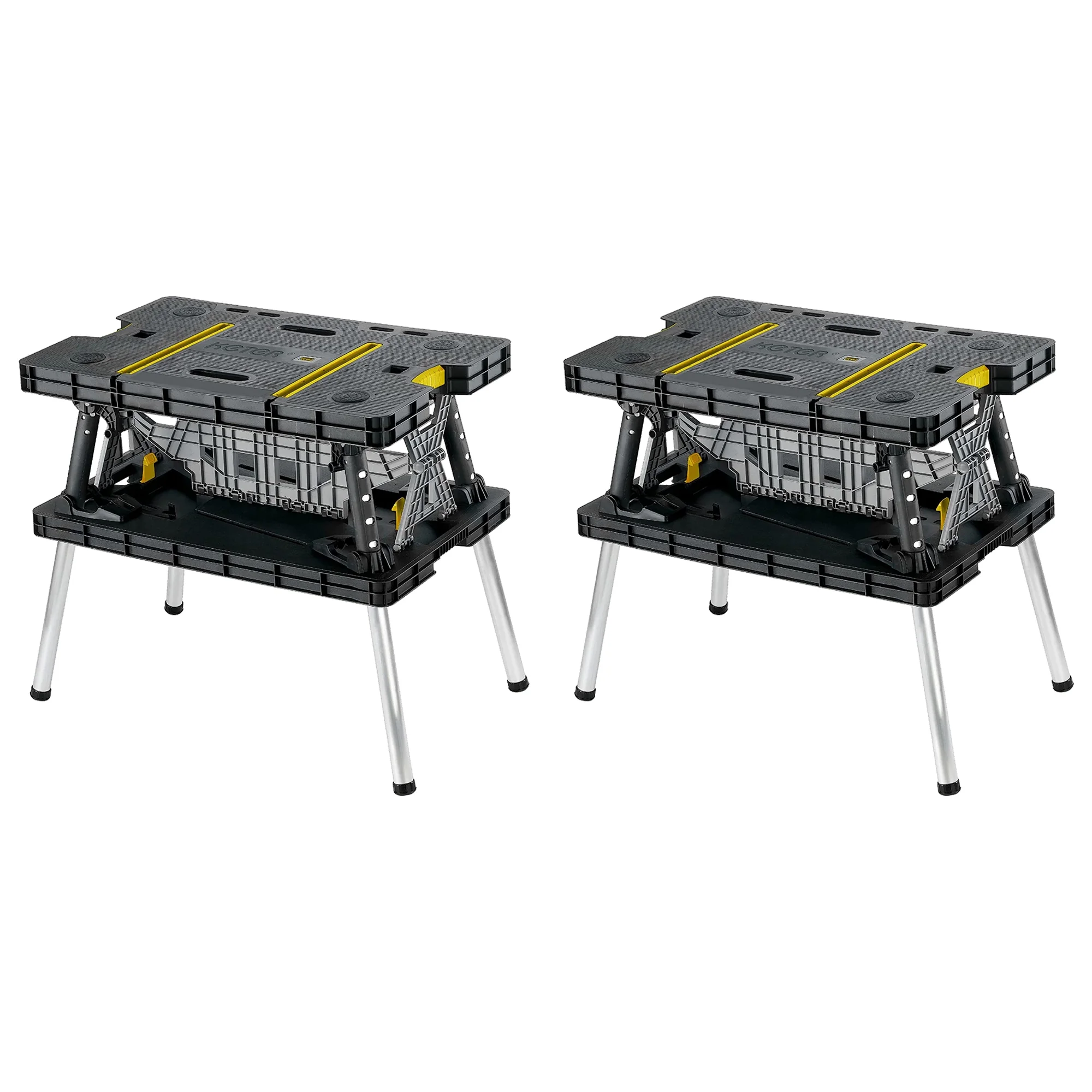Keter Folding Workbench Sawhorse with 12" Clamps, Black/Yellow (2 Pack)