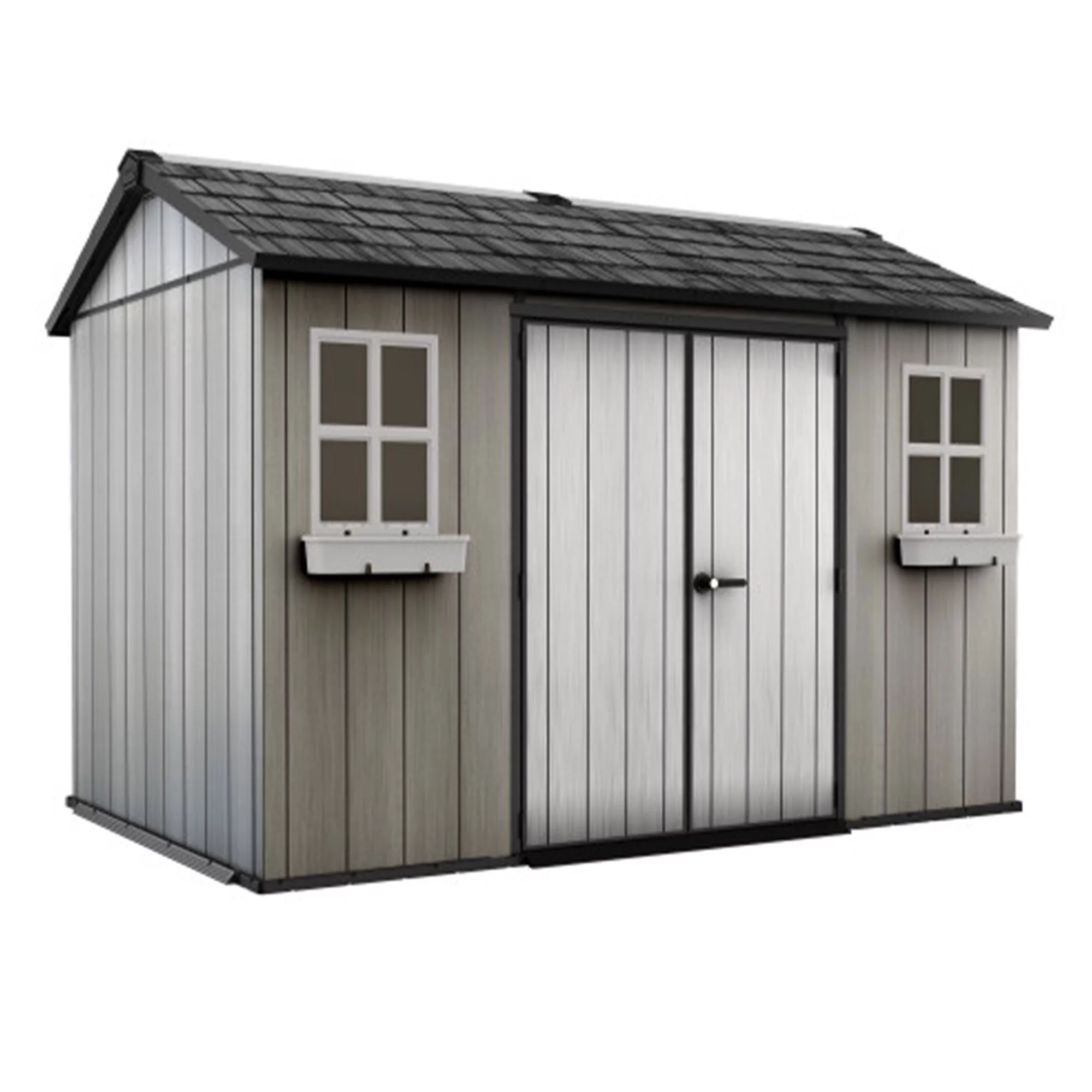 Keter Oakland 11 x 7.5 Foot Outdoor Garden Tool Storage Shed with Windows, Gray