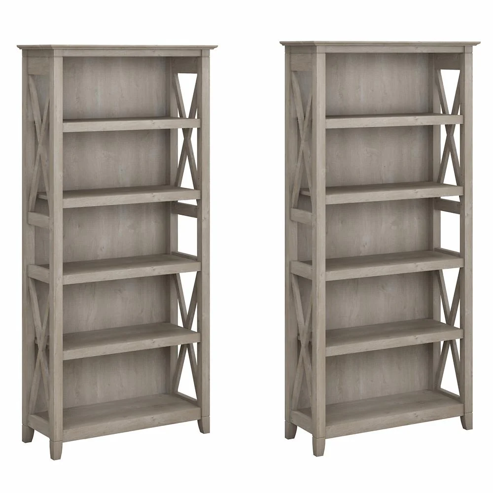 Key West 5 Shelf Bookcase Set in Washed Gray - Engineered Wood