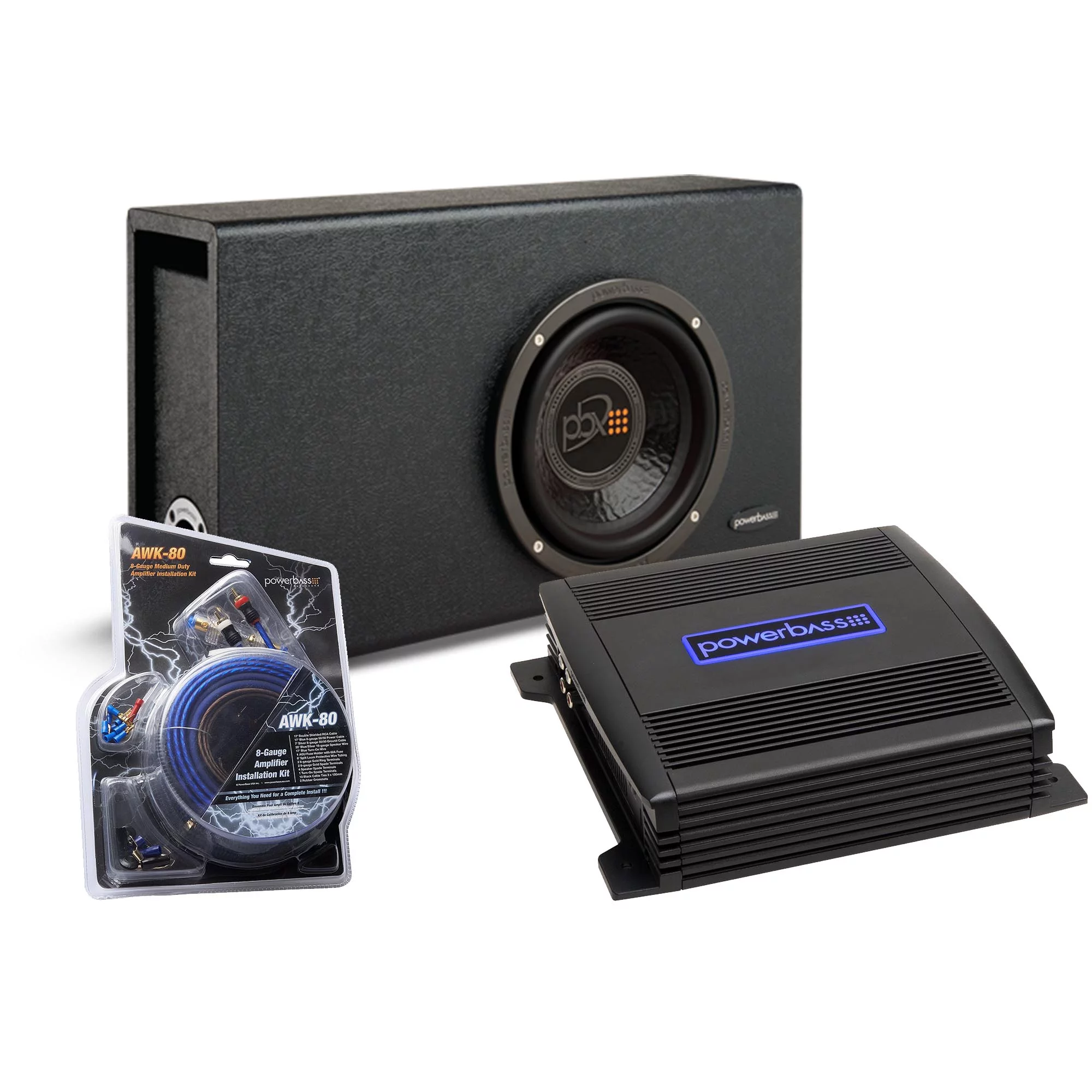 PowerBass Party Pack - Single 8" Subwoofer in truck enclosure with ASA3-200.2 Amplifier and Wiring Kit
