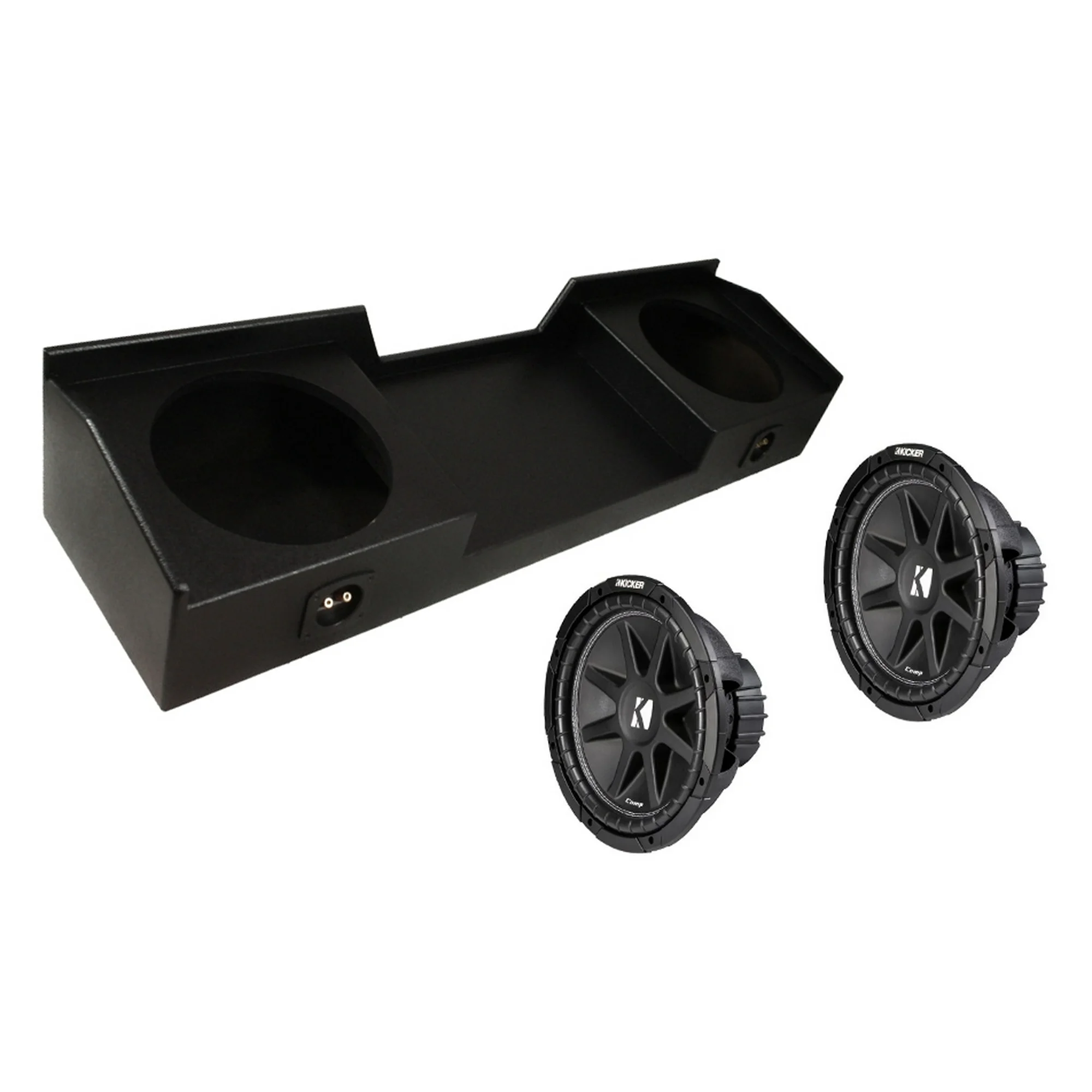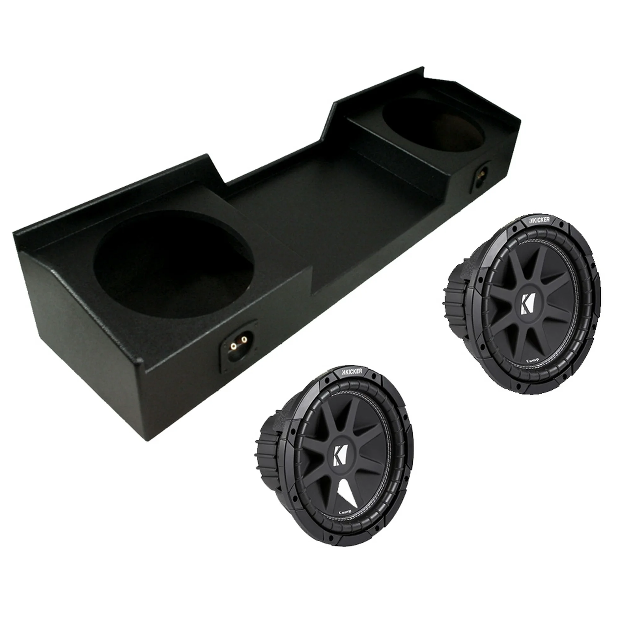 Kicker Comp R 12 Inch Dual Subwoofer in Vented Enclosure Package with 46CXA8001 Amplifier and wire kit