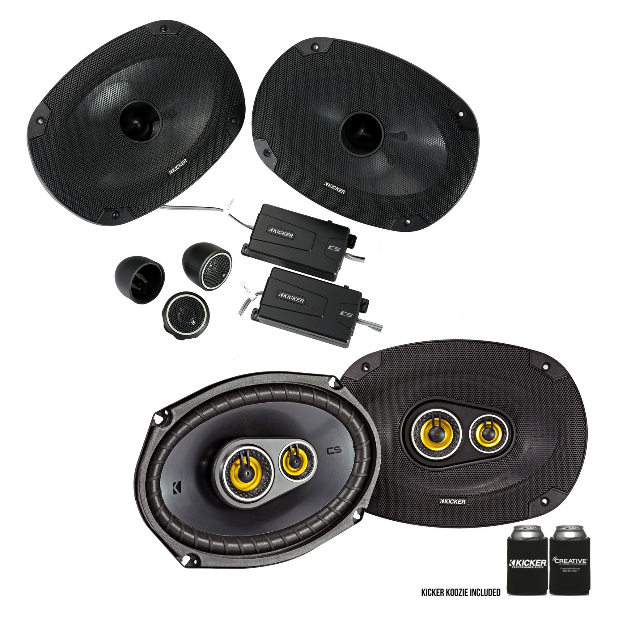 Kicker for Dodge Ram Truck 1994-2011 speaker bundle - CS 6x9" component speakers, and CS 5.25" coaxial speakers.