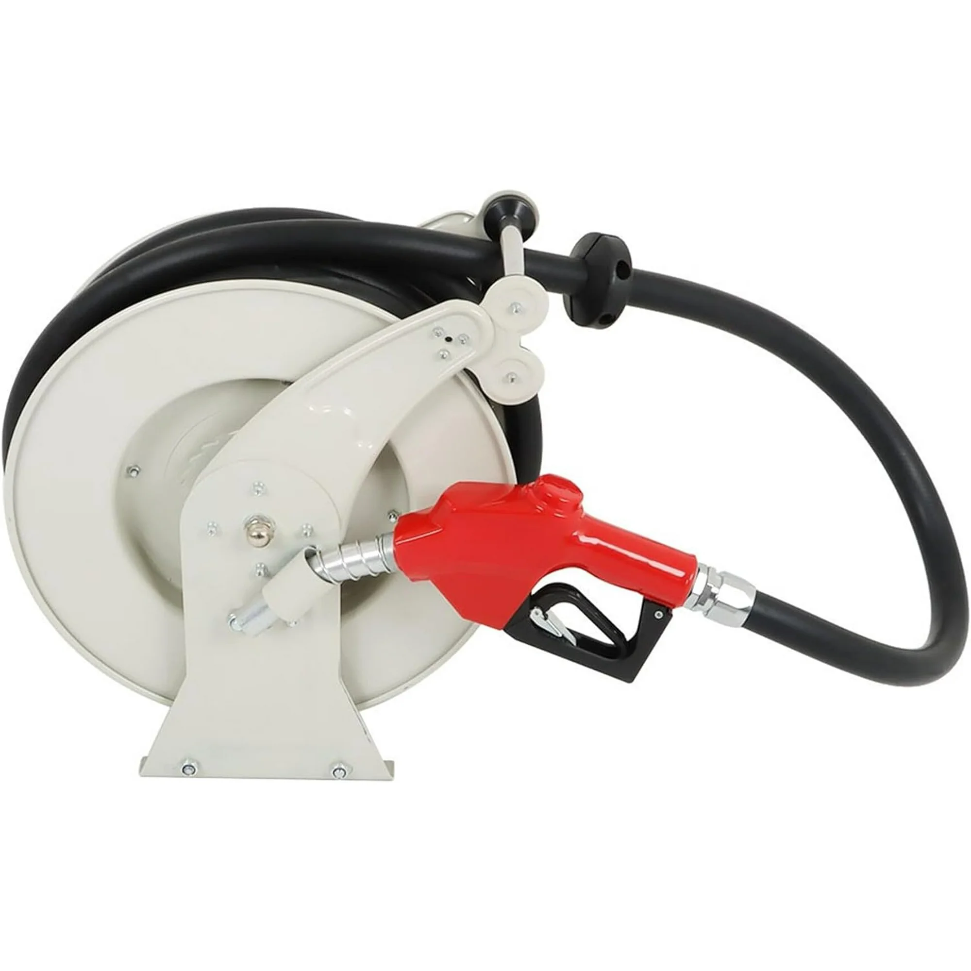 Fuel Hose Reel 1 Inch x 33 Feet Diesel Hose Reel Steel Structure Base Rubber Hose with Fuel Nozzle Hose Reel