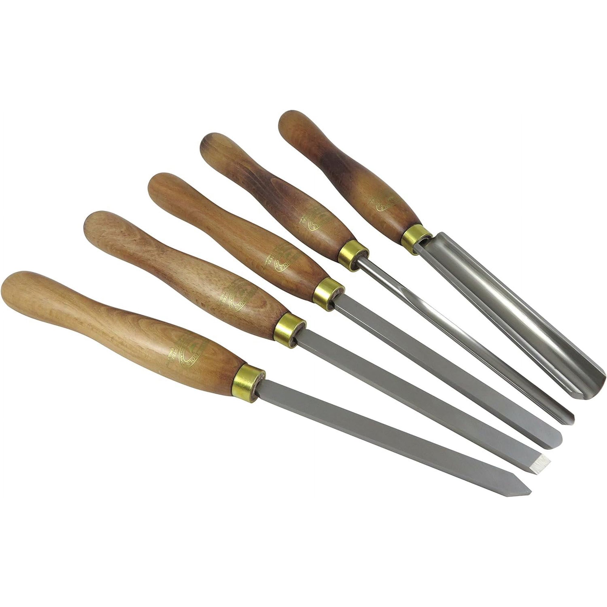 Premium 1/2 in. Round Nose Scraper & More - 5 Piece Wood Turning Set by Hand Tools Ltd