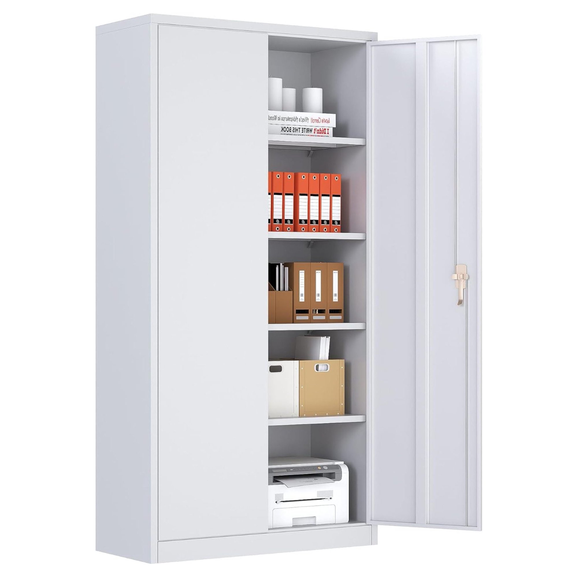 Killeryuki Upgraded Metal Garage Storage Cabinets with Locking Doors, 71 inches Locking Cabinet with 4 Adjustable Shelves for Warehouse, Home, Office, and Classroom (White)