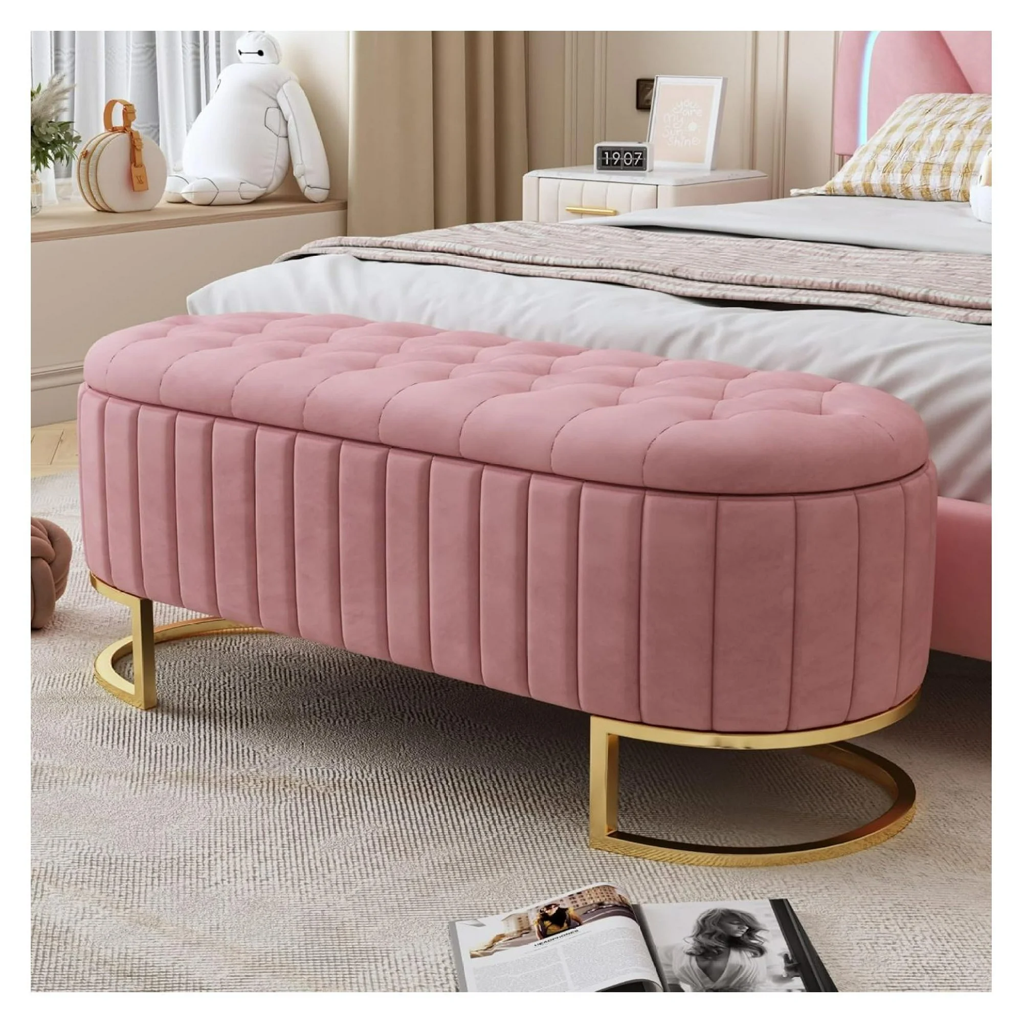 Killeryuki Upholstered Velvet Storage Ottoman with Button-Tufted, Storage Bench with Metal Legs for Bedroom, Living Room, Entryway, Fully Assembled Except Legs,