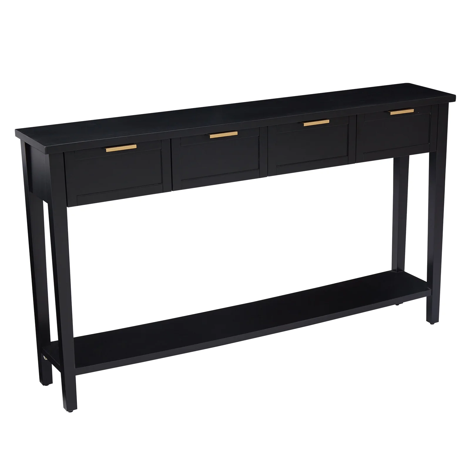 Kinbor Long Console Table, 2-Tier Narrow Sofa Table with Open Shelf & 4 Drawers, Modern Entryway Table, Black