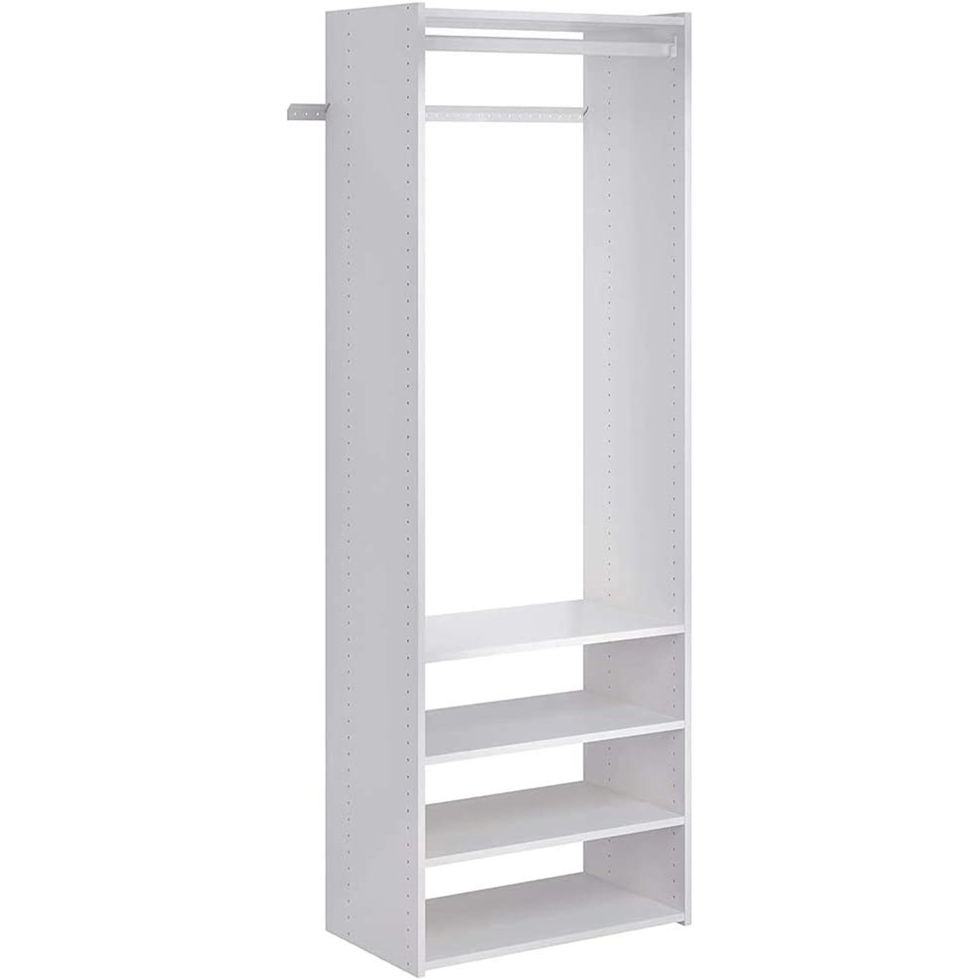 Premium Tower Closet Storage Wall Mounted Wardrobe Organizer Kit System with Adjustable Shelves, Hanging Rod, Hardware in White