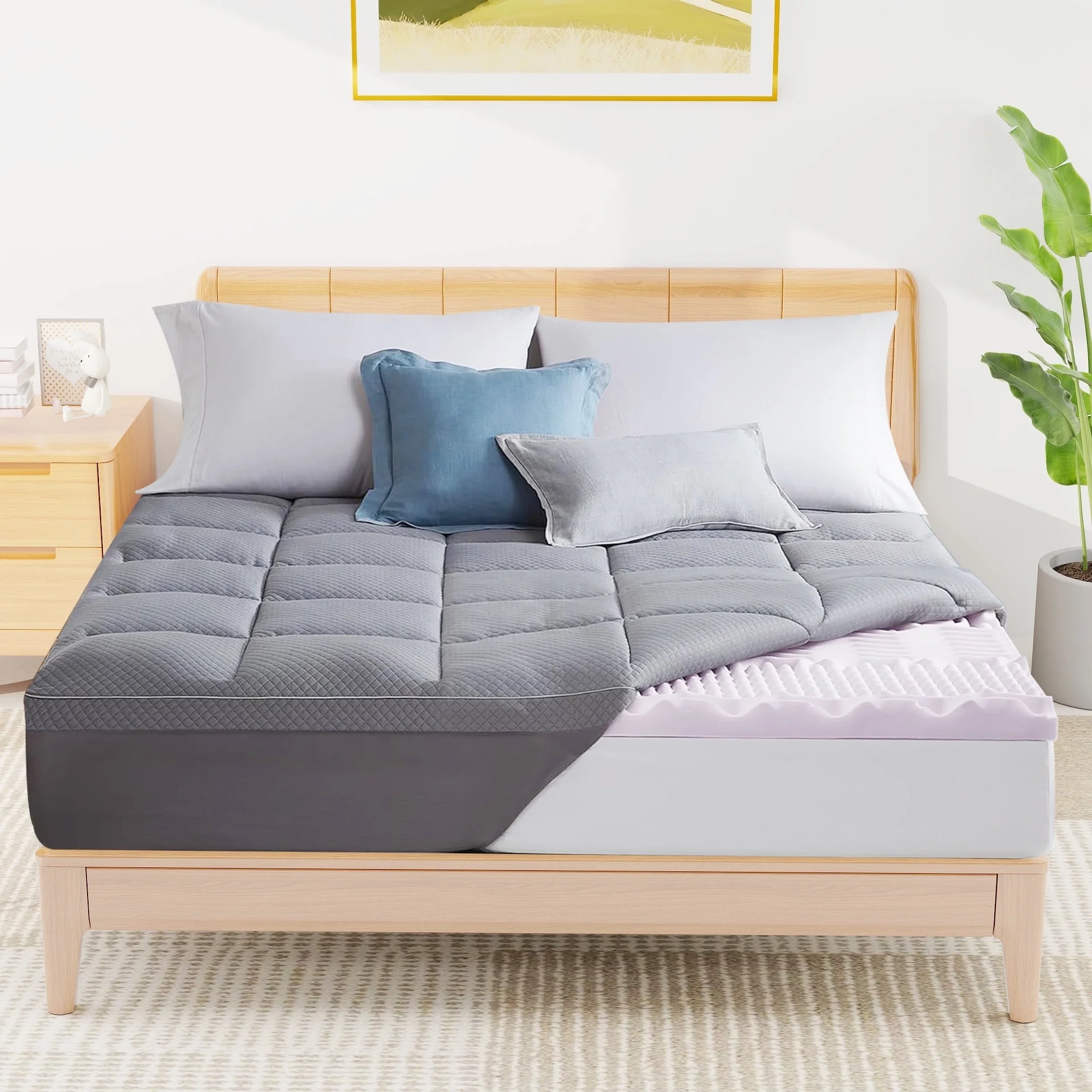 King Size Memory Foam Mattress Topper, 4 inch mattress Topper for Pressure Relief, Comfortable Sleep