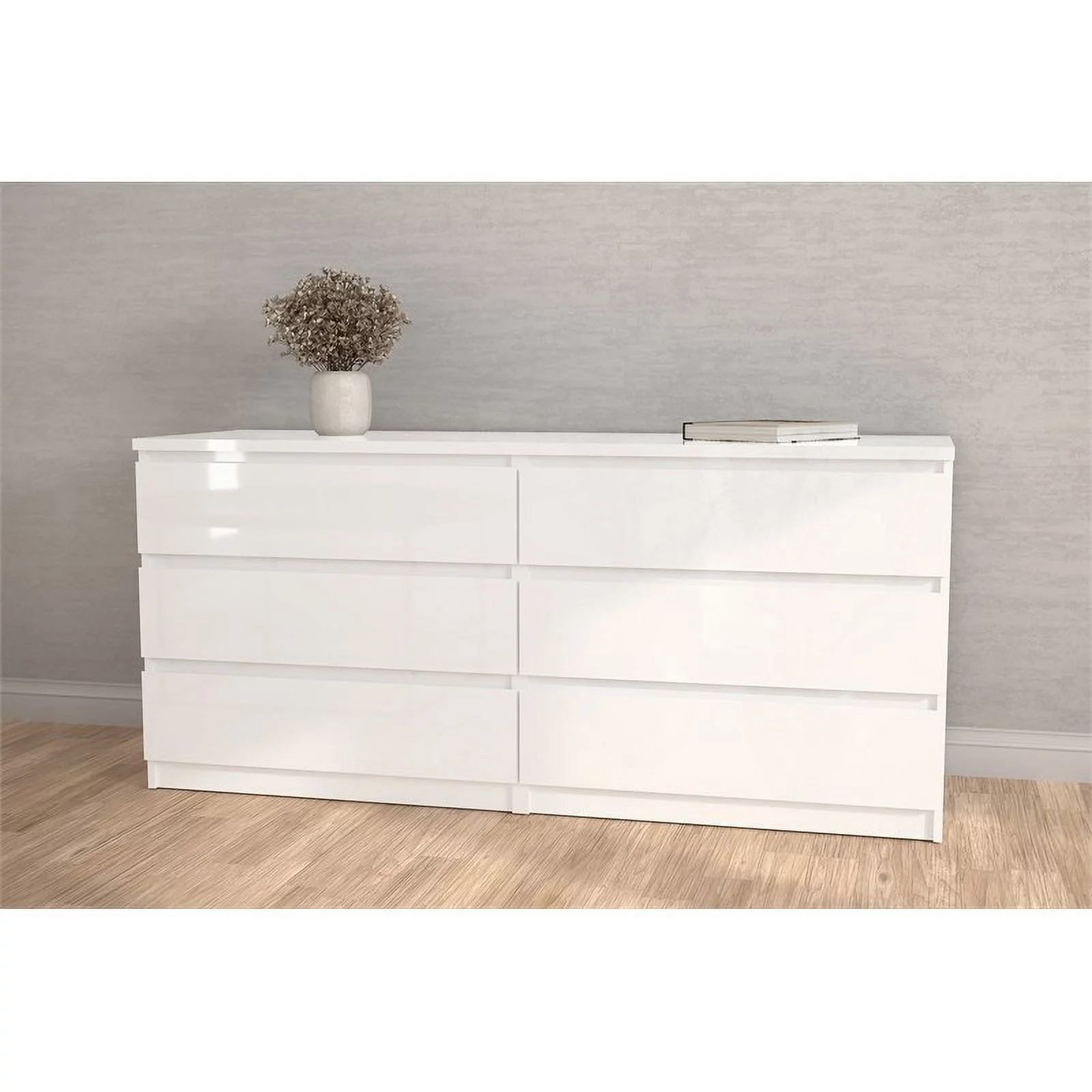 Kingfisher Lane Contemporary 6 Drawer Wood Double Dresser in White High Gloss